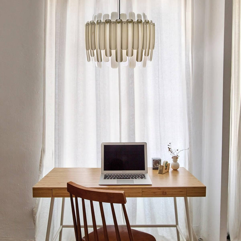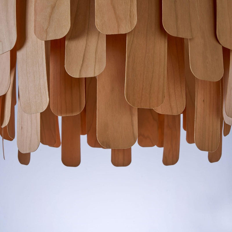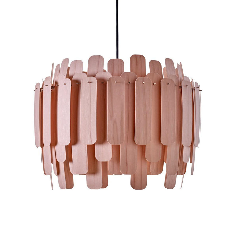 The Maruja Pendant Light by LZF Lamps features a complex design with a unique placement of wooden veneer stripes in a circular frame. Each wooden stripe is combined with a pin. An attractive matt finish uplifts the look of the boring interiors. This beautiful chandelier can be a striking addition in the living rooms and dining rooms. It creates a beautiful ambiance with a soft glow. This chandelier is available in various exquisite wood finishes like cherry, pale rose, orange, red, red sea blue, etc.