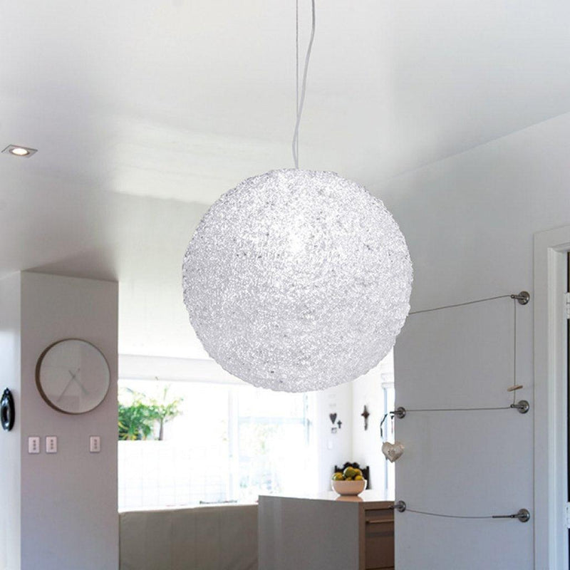The Matassa Pendant Light by Egoluce is a chic and stylish addition to your residential and commercial spaces. It comes with a round shape pendant that is suspended with the help of a wire from the ceiling. The clear glass pendant conceals the E26 base light bulb and serves as a diffuser for distributing the light. This helps it to give a soft light. With three size options: small, medium and large, this is suitable for all kinds of spaces.