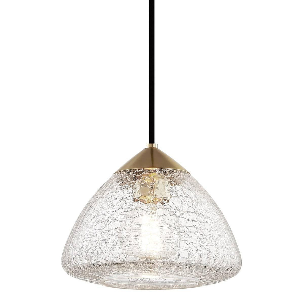 Presenting a mesmerizing appeal, the Maya Pendant Light by Mitzi leaves a lasting impression on your friends and guests. It makes an amazing addition to your interior space with its lustrous glass shade that has an exquisite texture. Each of the finishes-Aged Brass and Polished Nickel complement the shiny crystal shade radiating light from an E26 medium-base light bulb. Also, this pendant light is available in small and large sizes. Pair it up in multiples to complete a room setting with its flamboyance and lasting finish.