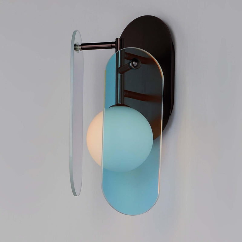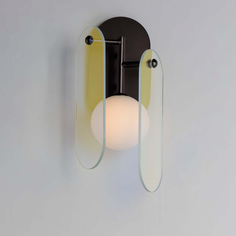 A monument to the beauty of stone, the Megalith collection is constructed using a robust iron stem that branches off to support various panel options. These various elliptical panels are back lit with globes of white cased glass. Choose from stone panels sets including Spanish Alabaster, a pleasantly pink Rose Jade, White Onyx or a breathtaking Striae Arya with dramatic veining and dark grey color tone. The enduring appeal of the stone's character boosts the luxurious nature of this design. The framework is available in Gunmetal or Brushed Bronze and made to order configurations for quick modifications. For a more modern, futuristic approach to the design, the Megalith collection is also offered in a retro dichroic glass option.