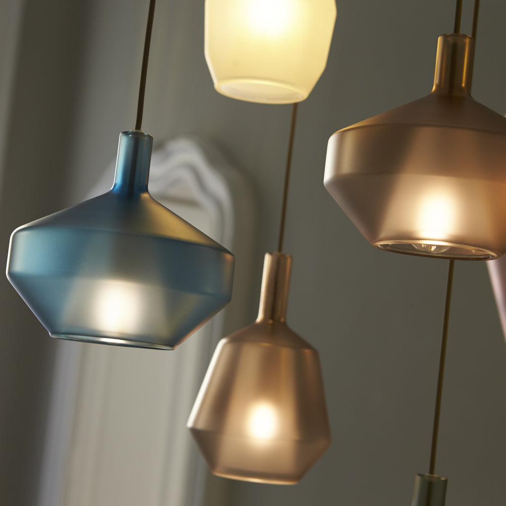 Revive the look of your home with this Mom Family Slim Pendant by Penta. Featuring a borosilicate glass geometrical shade in white, matt sand, matt sage green, matt blue avio, and many other finishes, this slim pendant lamp glows with the help of a LED bulb. Its structure is finished in titanium or white color to look perfect in any decor. Whether you want to update the style of your hall, gallery, kitchen or dining room, this lighting piece is going to be a centerpiece in your space.