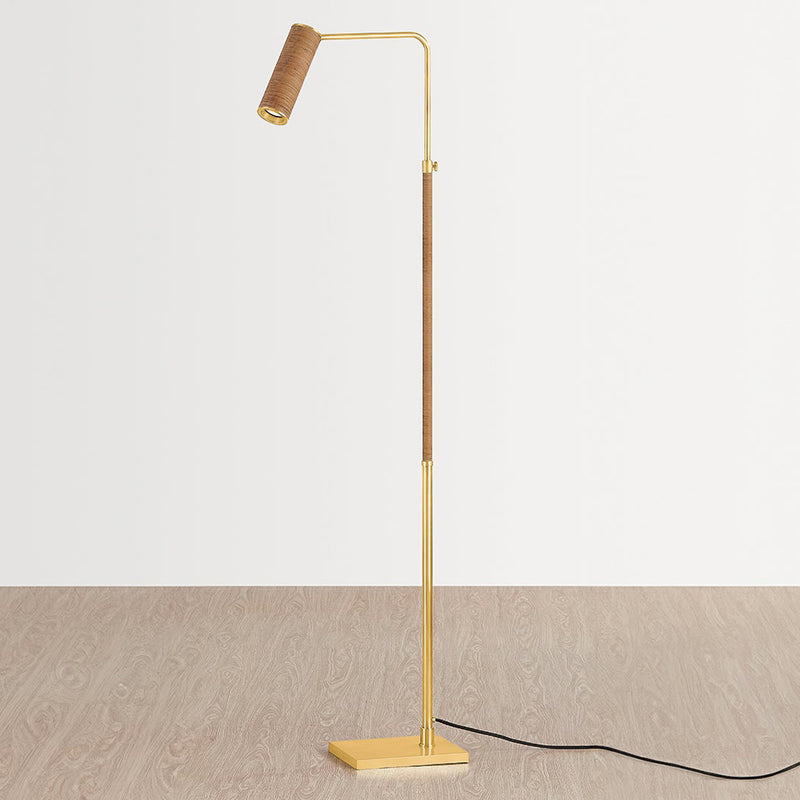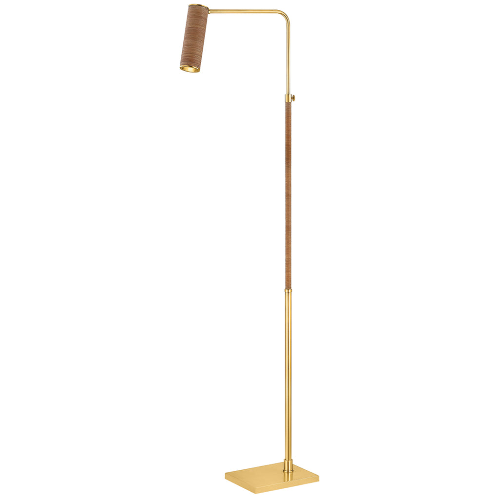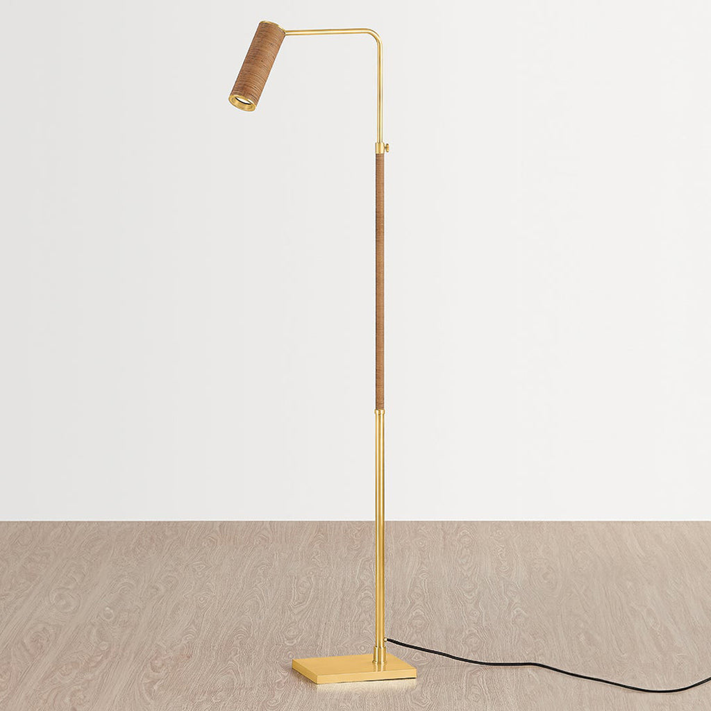 The Narragansett family tells an innovative design story marked by the use of tactile materials. While the silhouette of this sconce and floor lamp are understated, the Aged Brass metalwork and rattan-wrapped details mix hard and soft, manmade and natural. The elongated swing arm feature makes Narragansett perfect for bedside, desk, or reading nook illumination.