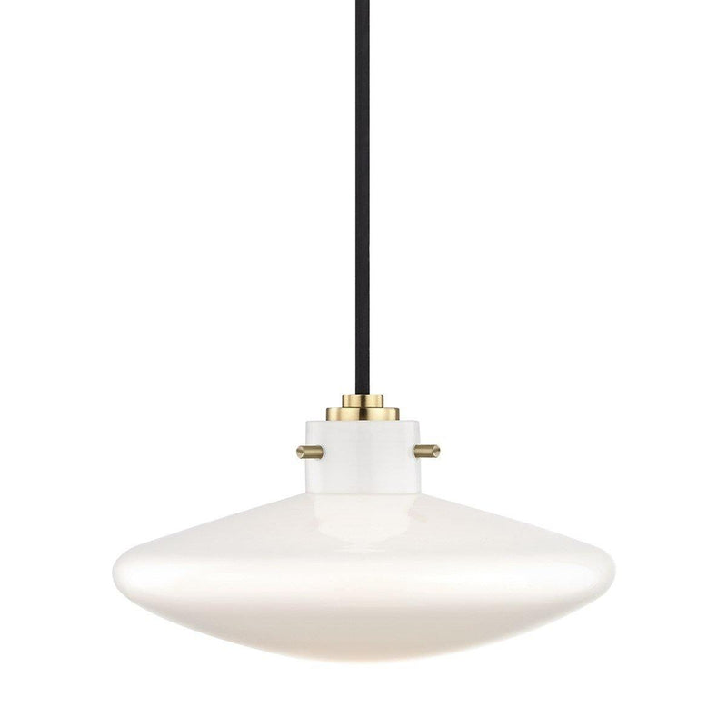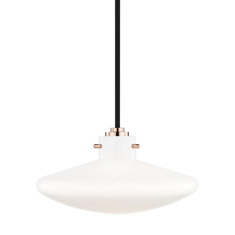 The Nemo LED Pendant by Mitzi is inspired by midcentury art to give your space a fresh look. Available in three different polishes as aged brass, polished nickel and polished copper, it is a versatile element that fits in any décor. The single pendant features LED as the light source in a G9-wedge base socket. It features an opal glass shade of disc shape with white color. This can be suspended from the ceiling for down lighting in commercial as well as residential spaces.