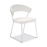 Add a touch of sophistication and efficacy to your mundane interiors with the New York CB/1022-LH Side Chair by Connubia. The chair comes in chrome frame with seat in Optic White Leather, Black Leather, Grey Leather, Taupe Leather. Crafted using finest quality metal frame and upholstered seat/backrest, this chair guarantees a unique blend of durability and additional comfort. The chair is available with Sled base providing great support and grip. It comes fitted with four plastic shockproof feet of neutral color, which complements the entire look of the chair perfectly.