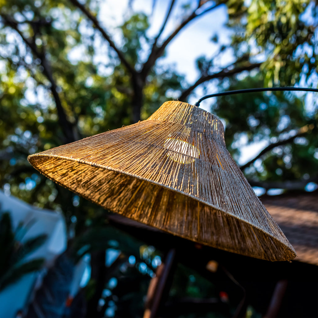 Discover the Niza by Newgarden, a revolutionary LED floor lamp designed for Canadian gardens, blending functionality and style without the need for any cables. Available in two sizes, Niza 165 and Niza 230, with heights of 165 cm and 230 cm respectively, these lamps are perfect for creating an elegant arc of light in any outdoor space. The lampshade, handcrafted from natural fibres, adds a touch of rustic charm, measuring 40 cm in diameter for Niza 165 and 80 cm for Niza 230.