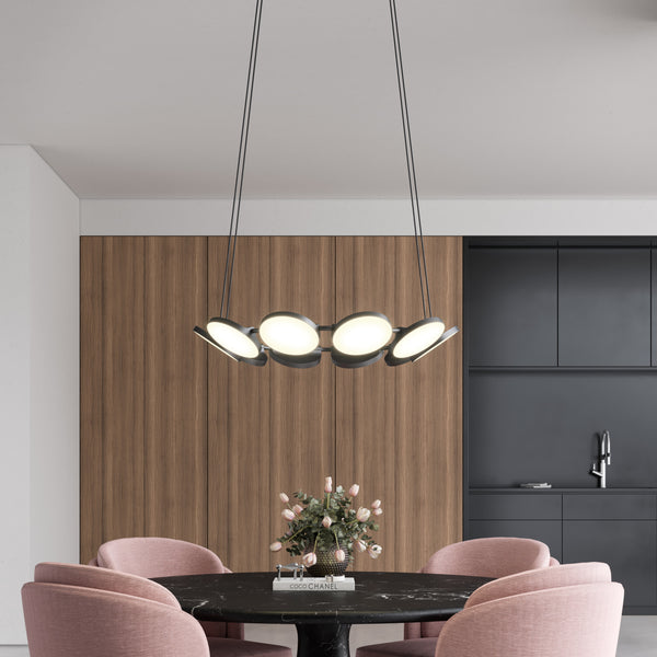 Bring a clean, geometric look to your interior space with the Novel Pendant Light from Kuzco lighting. The metallic frame of this sophisticated light is designed to add utter elegance to any modern day home. Suspending two sleek rods attached with an LED integrated acrylic diffuser, this lighting device provides a smooth and even glow in your home. Being bold black, this fixture is suitable for various decors.