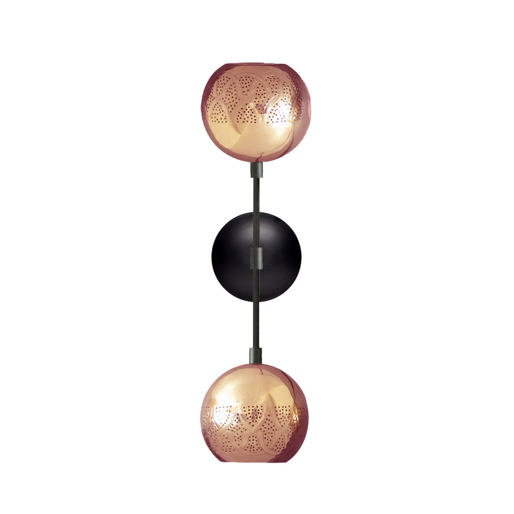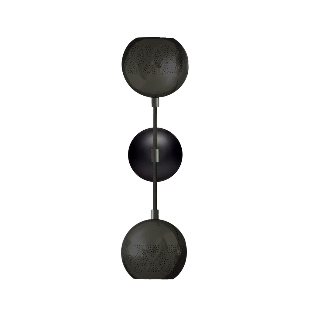 A perfect balance of history and modern simplicity, this sconce sets two metal globes against black arms and back plate. It’s a timeless piece, perfect for modern living spaces. Can be horizontally or vertically mounted, maximizing its use.