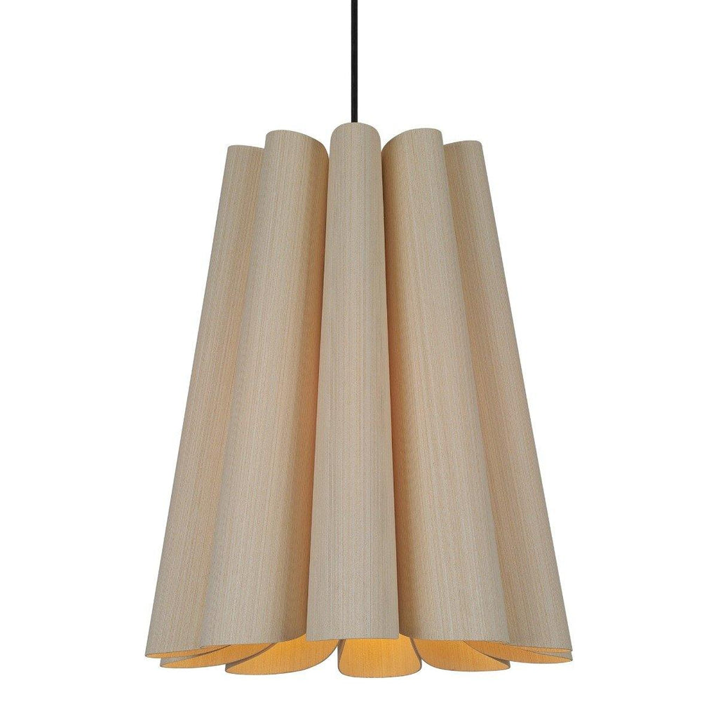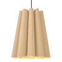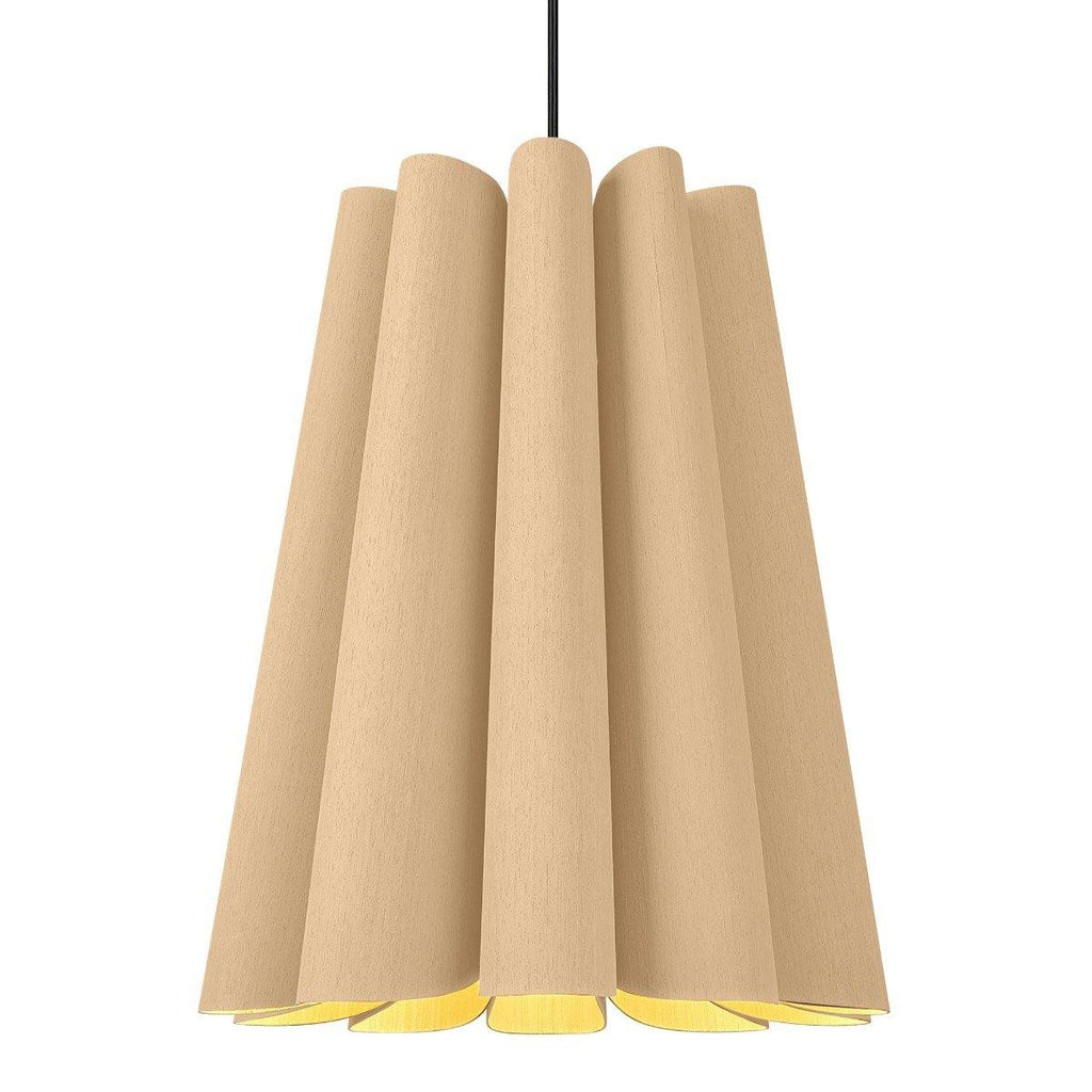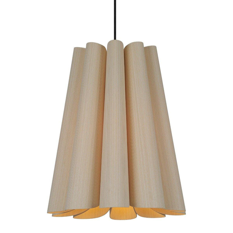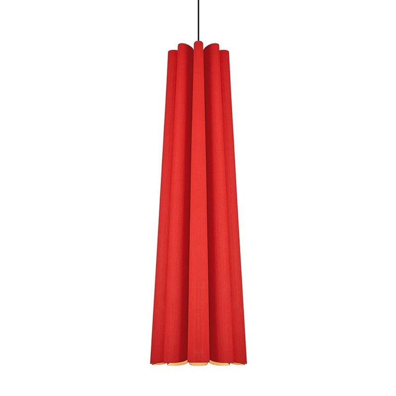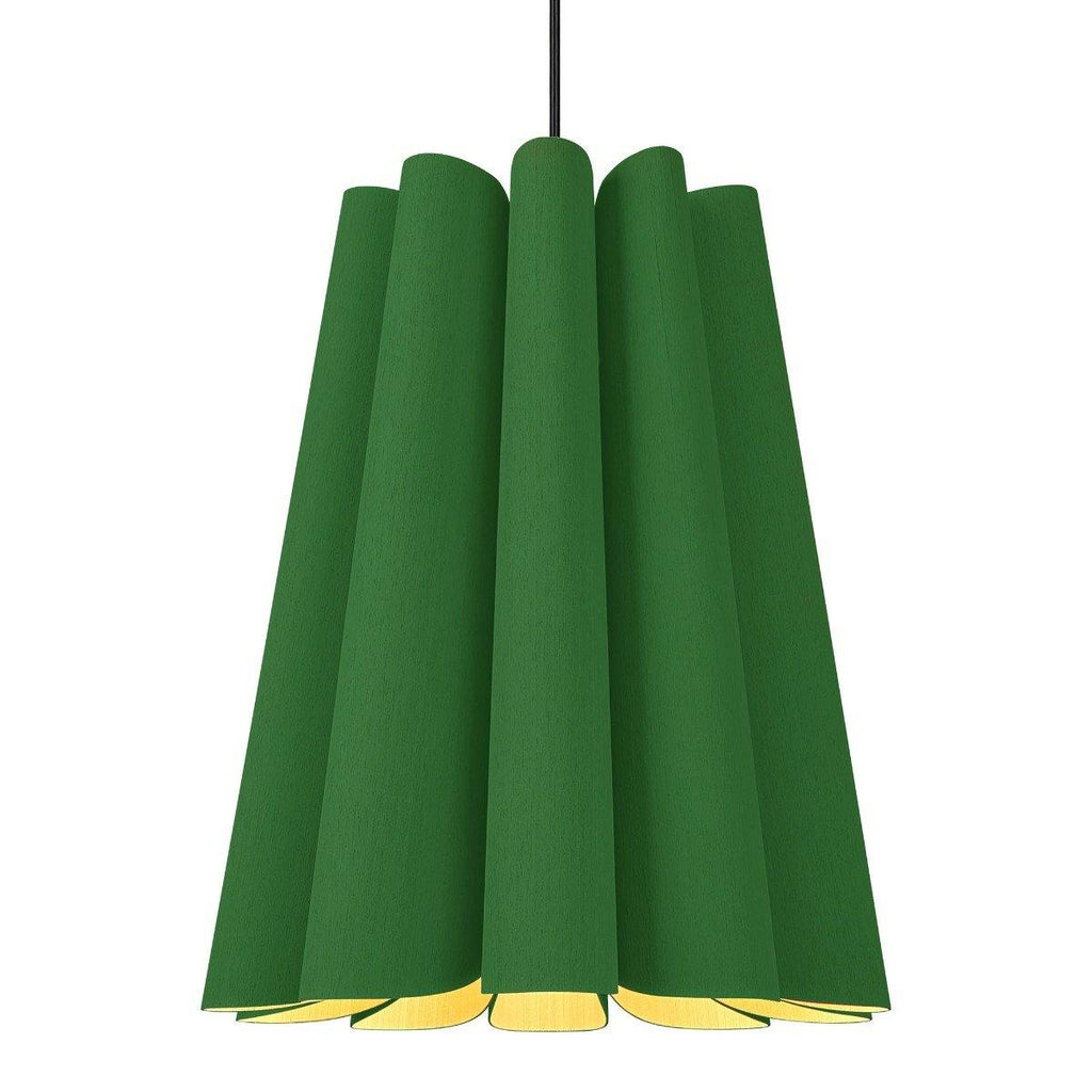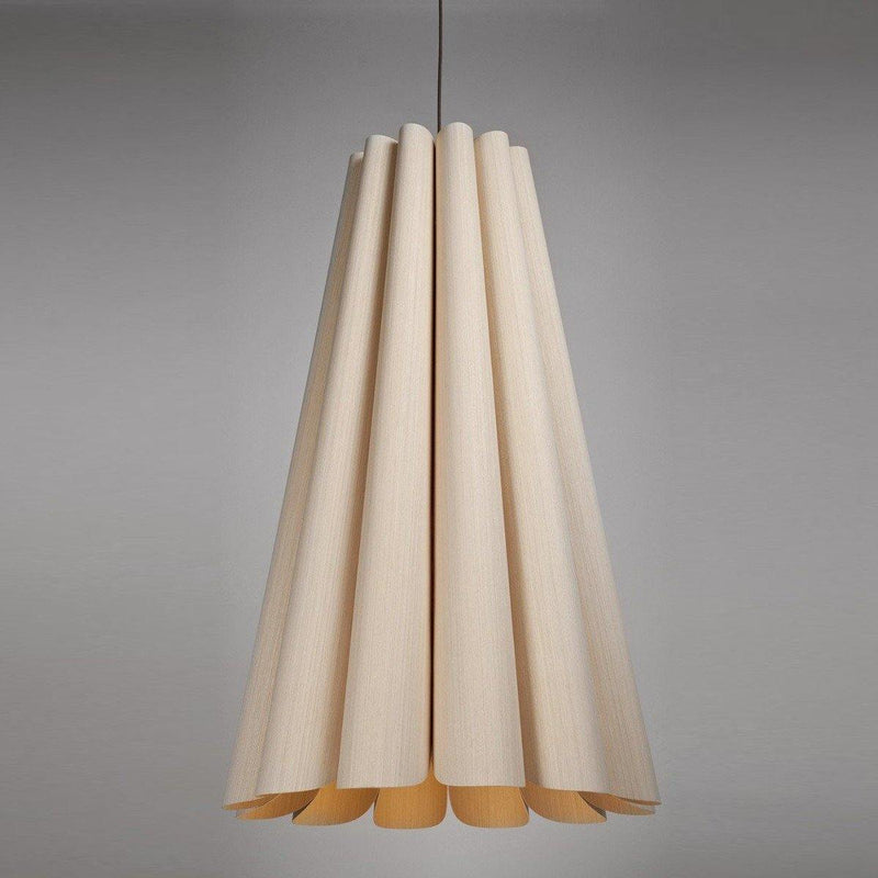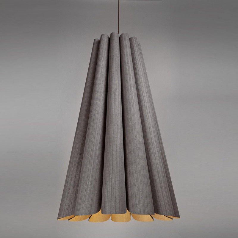 An intriguingly curvy and charming piece to adorn your living room, dining room, or hallway! The Olivia Pendant from Weplight features a wavy-silhouette, which is handcrafted from reconstituted wood veneers. This two-sided veneer wood manufacture is fused with a malleable center panel to render this lighting piece with strength and longevity. Olivia is designed in various colors, such as ash, beech, ebony, grey oak, wenge, petiribi, red, yellow, green, blue, and white. It comes with an E26 light source and is available in small, medium, large, and extra-large sizes.