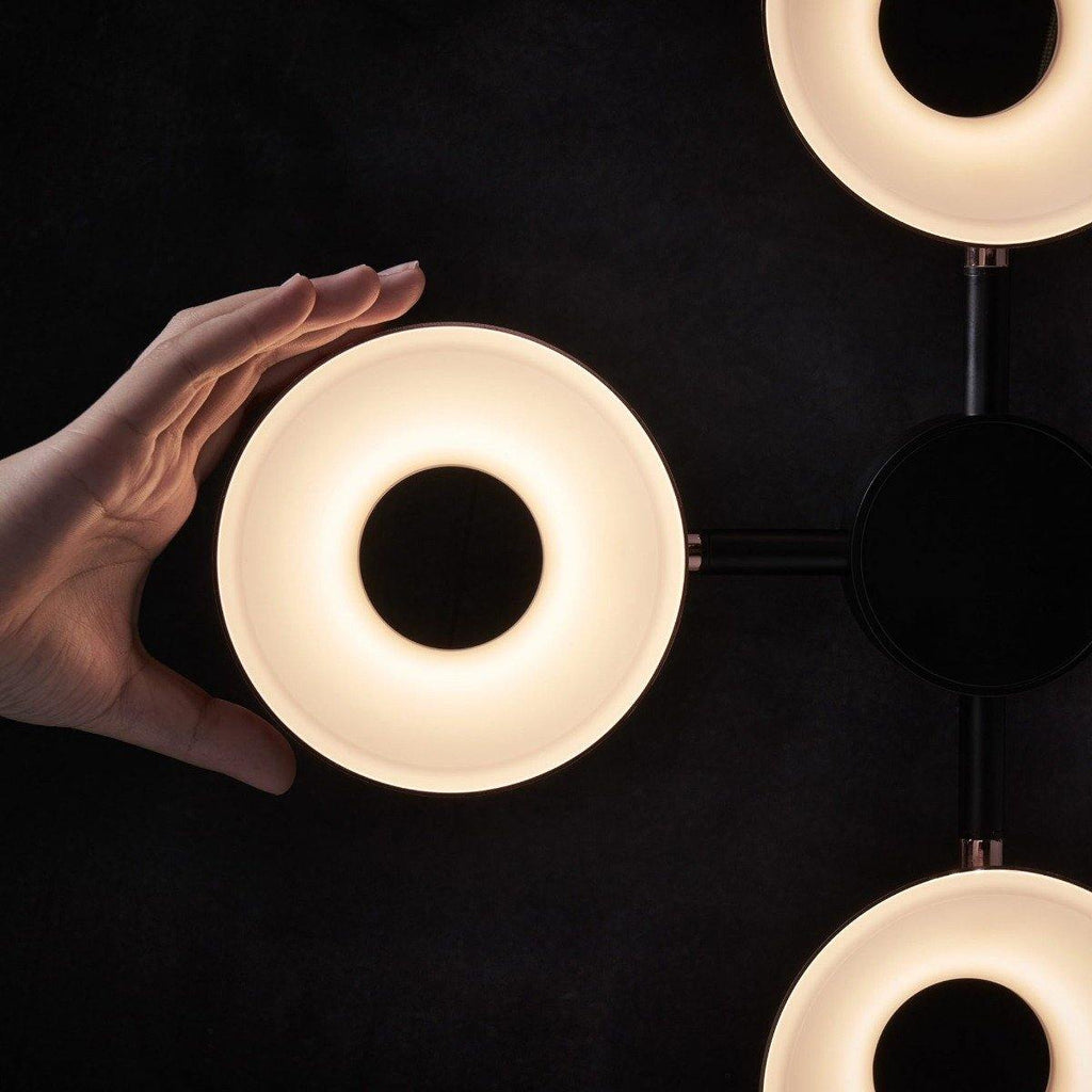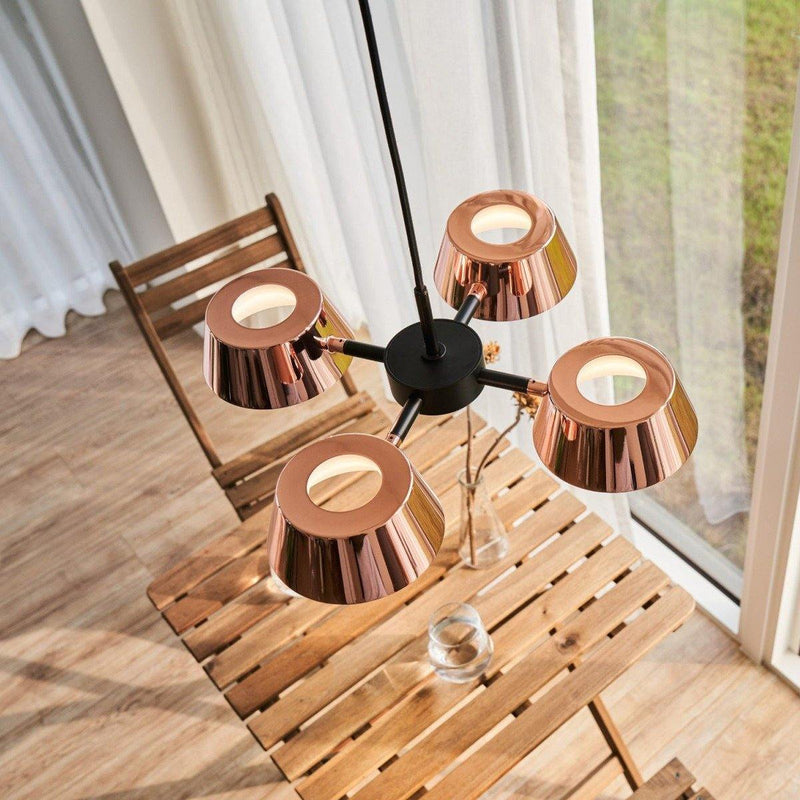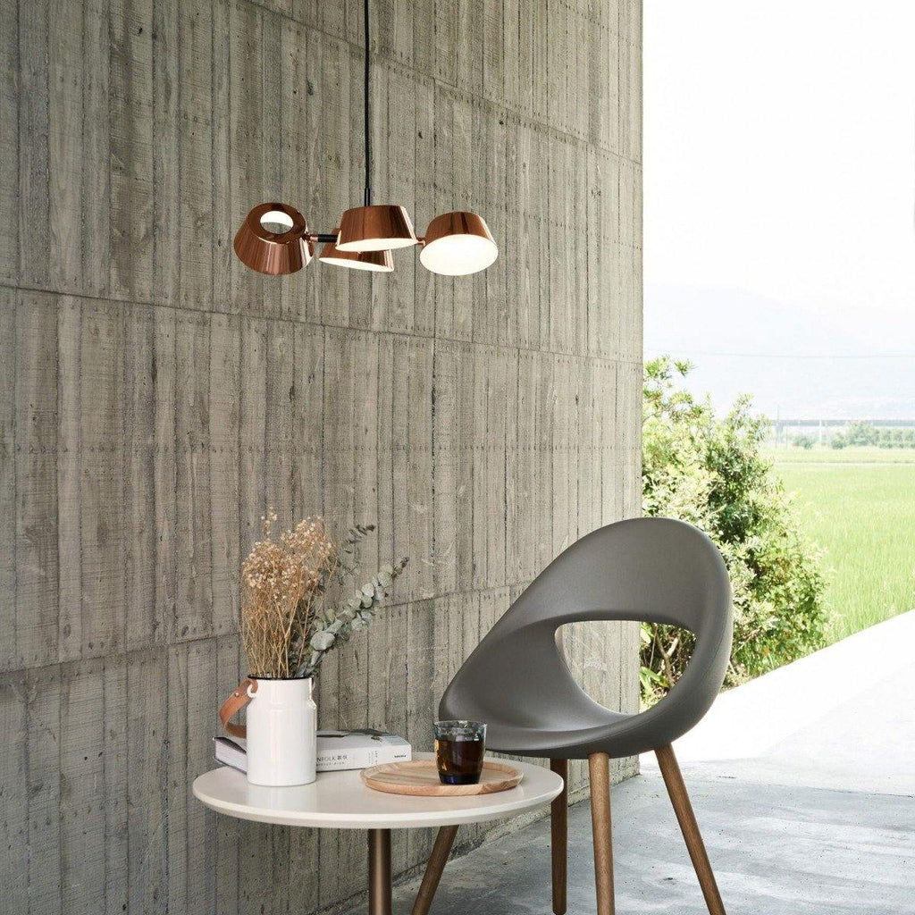 Emphasize the beauty of your decoration mindset and skills by adding a classy piece of lighting like this Olo PC4 Pendant from Seed Design to your interior space. The rotatable lamp shades suspending from a robust metal frame hold LED light sources for glare-free illumination. With this lighting accessory, there are many possibilities to accentuate your indoor or outdoor architecture. The finish on the metal frame of this pendant light is given in a pleasant combination of Black and Copper that will match any and every décor accessories in your home.