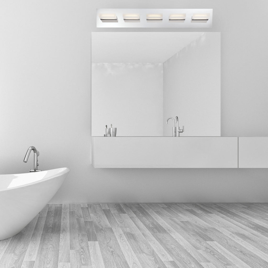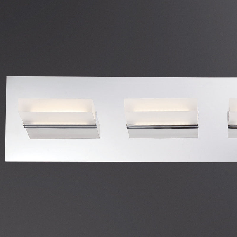 The Olson LED Wall Sconce by Eurofase has a geometrical design that makes it perfect for both traditional and contemporary home décors. It is a simple lighting piece with a frosted acrylic diffuser horizontally fixed on a sturdy chrome frame. This energy-efficient LED wall sconce beautifully illuminates your bedroom, dressing area, study room, and kitchen with its 3000K soft white light. Its 80+ CRI indicates that it reflects the natural colors of the objects.