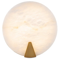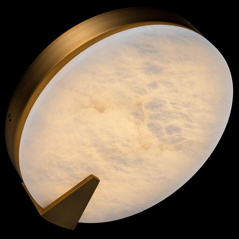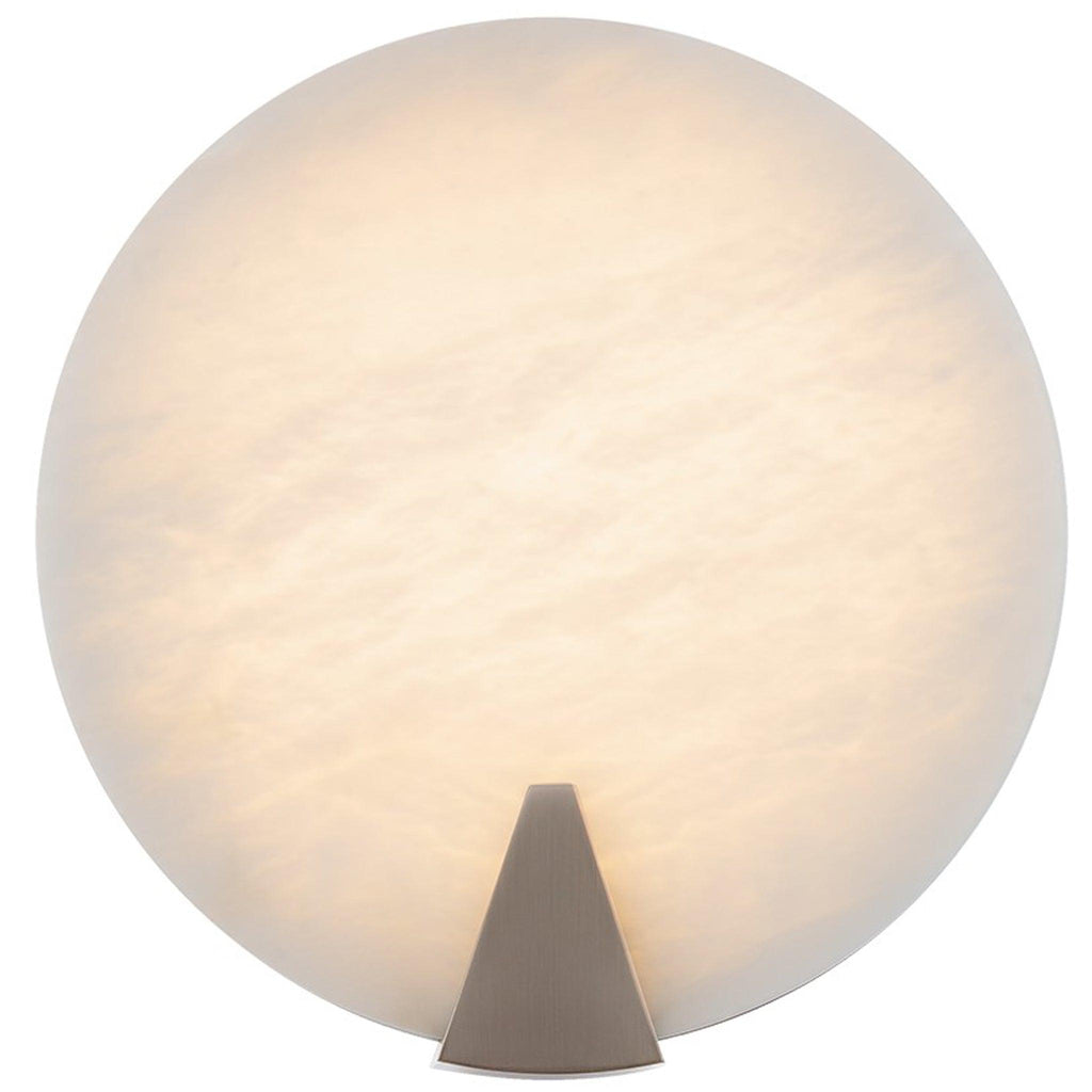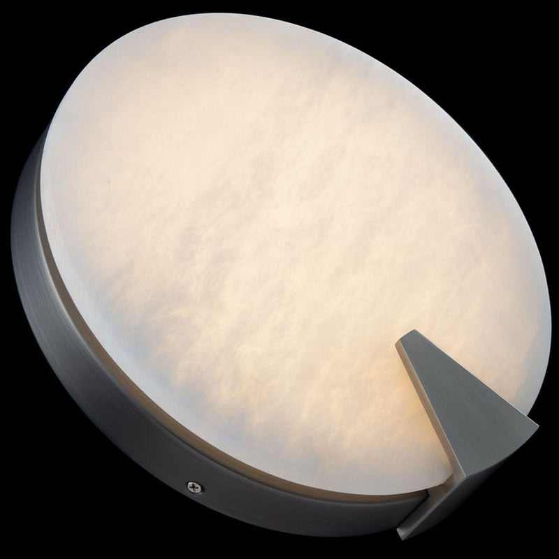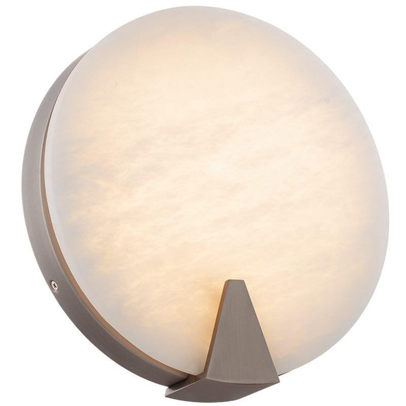Add luxurious character with this curvaceous sconce. Enjoy rich tones and natural veining textures of authentic Spanish alabaster. The clean spun aluminum profile reflects a minimalist architectural in aged brass or antique nickel.