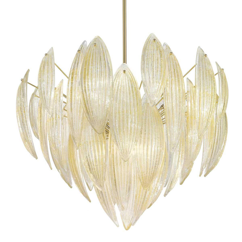 Style your home the way you would style an outfit to stand out from the others with a stunning lighting accessory like the Paradise Large Chandelier by IDL. You will love your room when it will be illuminated by the shining appeal of this fixture. The leaf-style shades enveloping the light source diffuse illumination throughout the place. This chandelier is available in Bronze, Transparent, White, Aquamarine, Silver Leaf, and Gold Leaf glass options, all of which can illuminate your interior space with a G9 light source quite beautifully.
