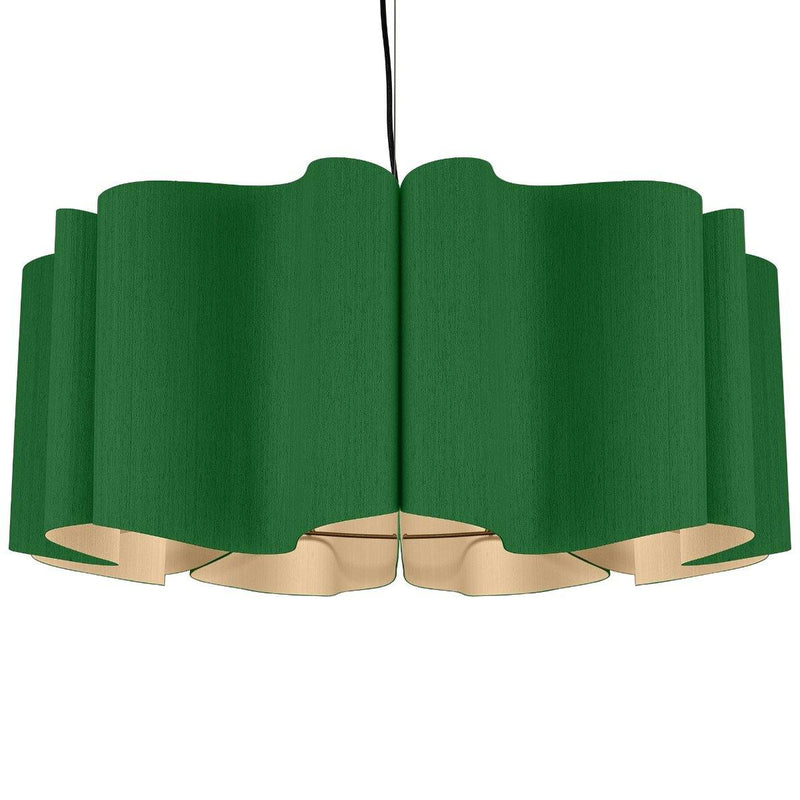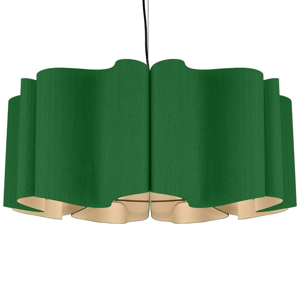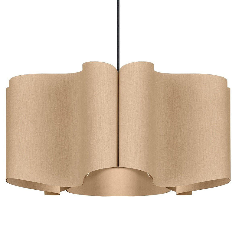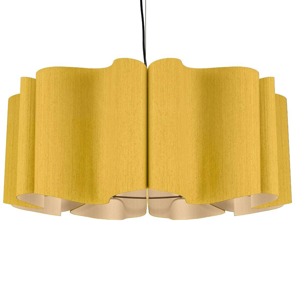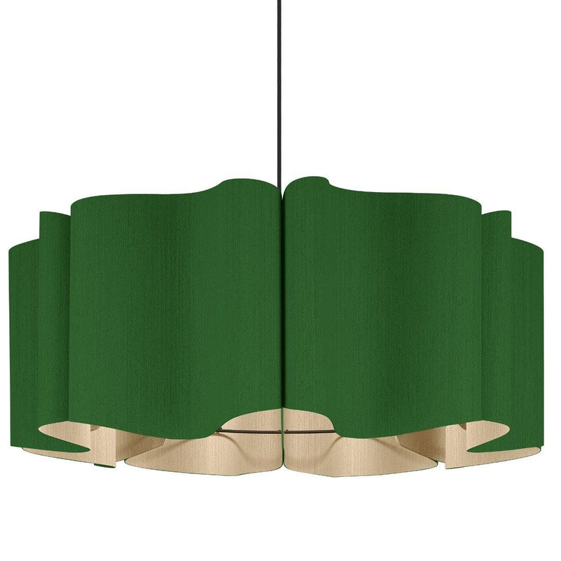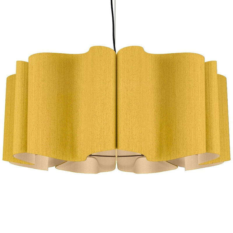 Presenting a modern take on classic drum shape, the Paulina Pendant from Weplight is a unique and curvy addition suitable for all kinds of décor. Don't be fooled by its modern appearance, it can totally be the star of any home, be it contemporary or traditional. Reconstituted wood veneer is carefully and artistically bent to give watery-waves structure. Fused with a malleable center panel, this lighting device is sturdy and offers a lasting performance. It works on E26 light source, and is available in small, medium, and large sizes. The available color options are ash, beech, ebony, grey oak, wenge, petiribi, red, yellow, green, blue, and white. Natural Felt color is available only for Acoustic feature.