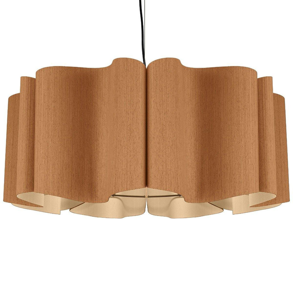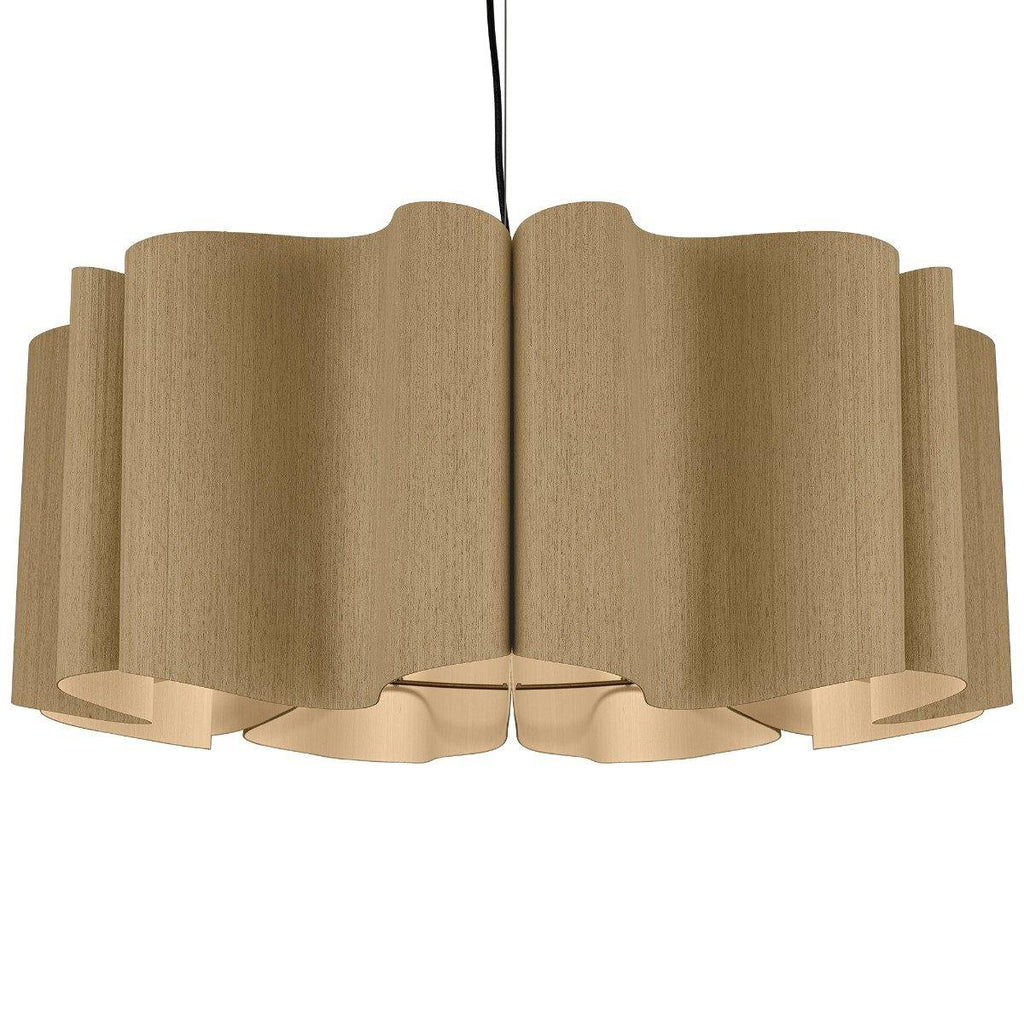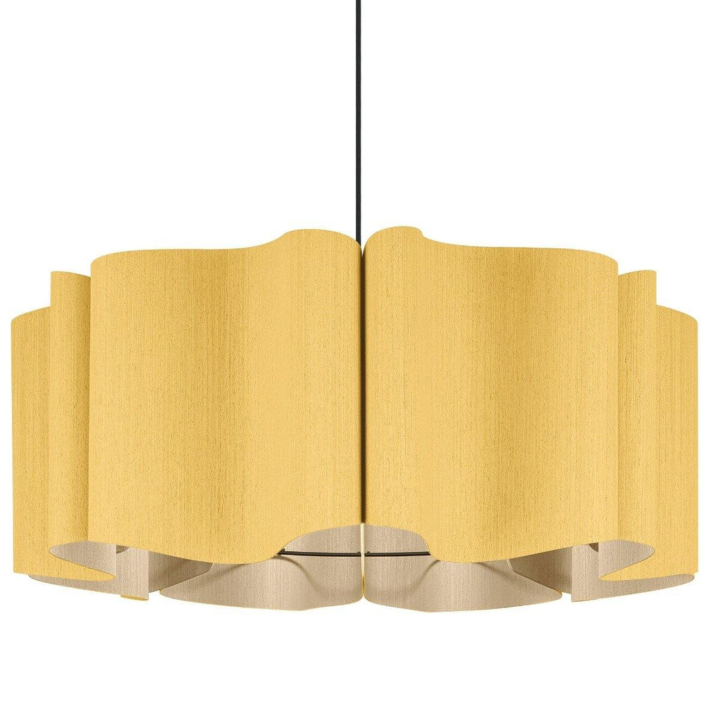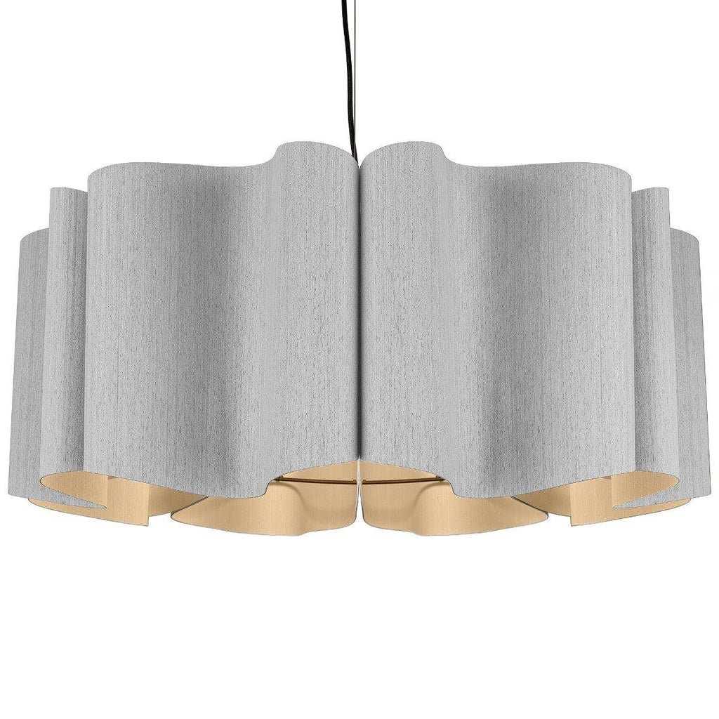 Presenting a modern take on classic drum shape, the Paulina Pendant from Weplight is a unique and curvy addition suitable for all kinds of décor. Don't be fooled by its modern appearance, it can totally be the star of any home, be it contemporary or traditional. Reconstituted wood veneer is carefully and artistically bent to give watery-waves structure. Fused with a malleable center panel, this lighting device is sturdy and offers a lasting performance. It works on E26 light source, and is available in small, medium, and large sizes. The available color options are ash, beech, ebony, grey oak, wenge, petiribi, red, yellow, green, blue, and white. Natural Felt color is available only for Acoustic feature.