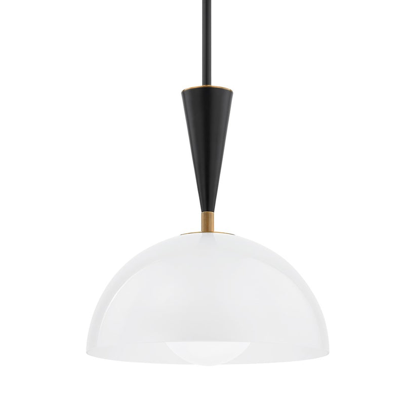 A dome-shaped shade is paired with a slender, conical neck creating a vintage-inspired silhouette that has a minimalist, modern appeal. The clear glass shade is etched on the inside and fills with a soft, gorgeous glow when lit. Pops of Patina Brass contrast beautifully with the Soft Black finish. The wall sconce can be mounted to provide uplight or downlight.