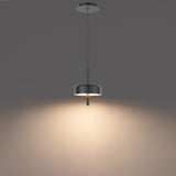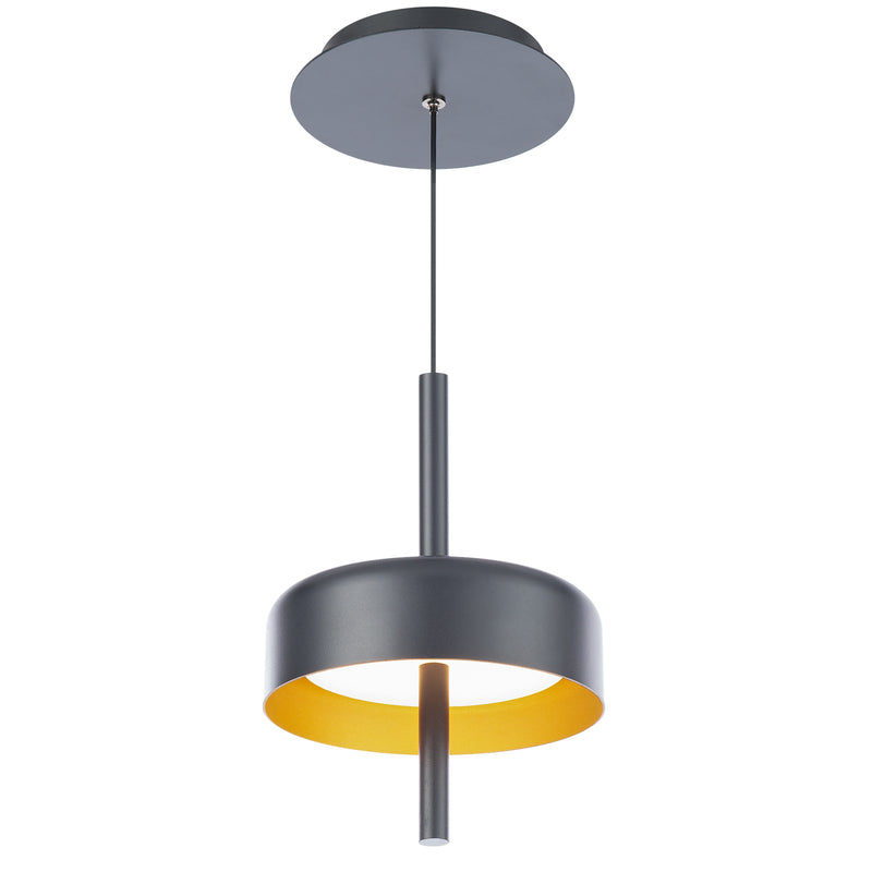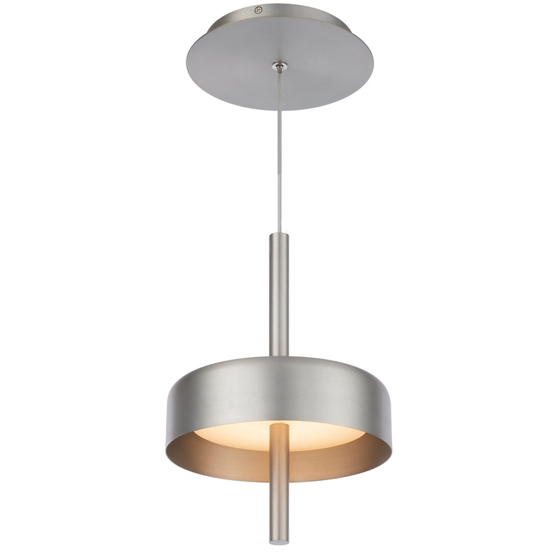 Bring a pleasant silhouette to the nook or open space with the smooth, sculptural lines of the Pierce LED Mini Pendant from dweLED. Retained by a stepped disc canopy, it sends down a slender, adjustable cable for a versatile suspension. A sleek stem follows below, piercing through a rounded dome shade and housing. These metal forms hold the LED lamping that blazes out below through a glare-reducing acrylic diffuser. The diffused light sparkles off the bright interior of the shade to introduce a warm wash of downlight to the surface below.