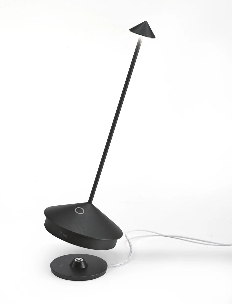 Wonderfully unique and efficient, the Pina Battery Operated Table Lamp offered by Zafferano complements any room setting with its aesthetic and high-tech functions. This table lamp is for outdoor use. Powered by a rechargeable battery, this table lamp features a contact charging base to make your life easier and more resourceful. Also portable, this lighting accessory has a warming effect of up to 2200K, 2700K or 3000K