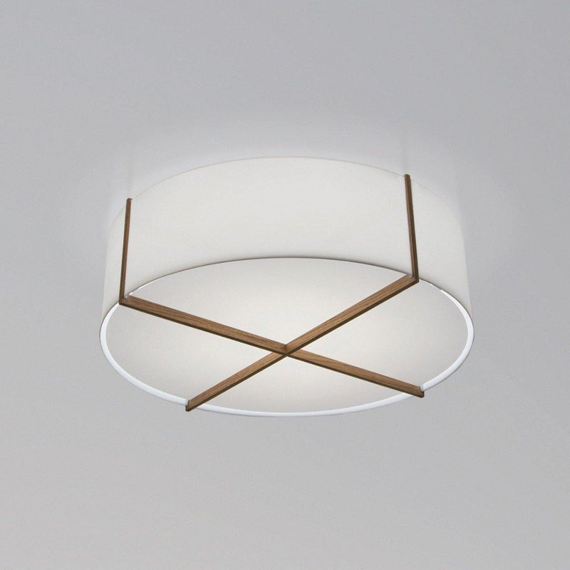The Plura Flushmount by Cerno is a uniquely designed modern fixture, featuring neat outlines and a round shape that is protected by metal bars in an intersecting fashion. Its excellent execution adorns the ceiling of any modern home interior. Available in four distinct sizes of 18 inch, 24 inch, 30 inch, and 36 inch, the lamp can be chosen according to the room measurements and its requirement. Fitted with a fluorescent light source, it disperses bright light for the brilliant lamination of the room. You can choose between the sleek oiled walnut finish and the intense dark stained walnut finish of this modern ceiling fixture to lighten rooms, hallways, and galleries.