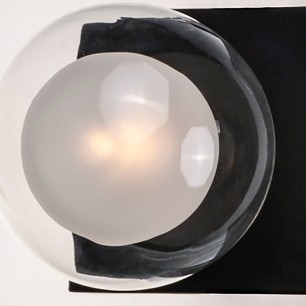 Branches of Black with Gold accent lift globes of Clear glass surrounding a nucleus of Frost glass. The globes attach to the fixture via threads for a clean and seamless installation. Replaceable LED G9 lamps are included for maintenance free operation.