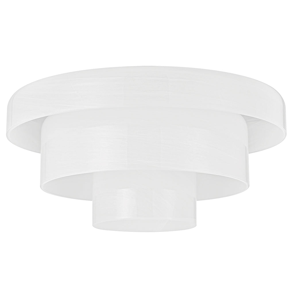 Inspired by an iconic mid-century design, this layered flush mount makes a bold style statement. Three concentric clear cloud glass shades surround a central light bulb, reducing glare. The varied heights of the glass allow the light to glow outwards from all points of the fixture.