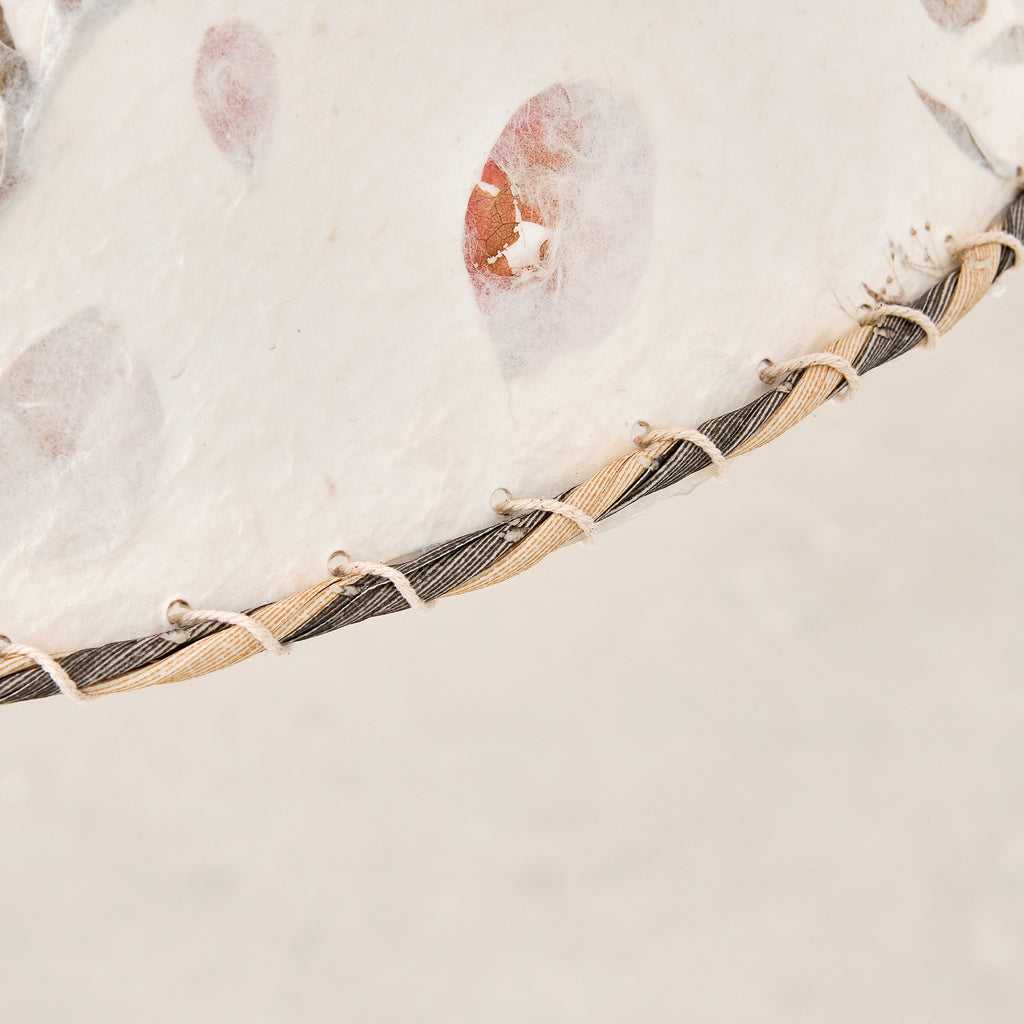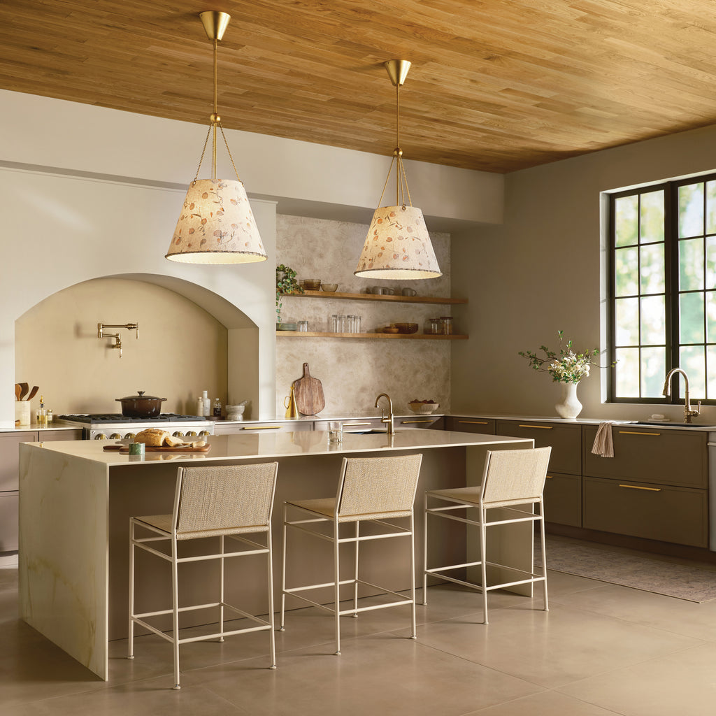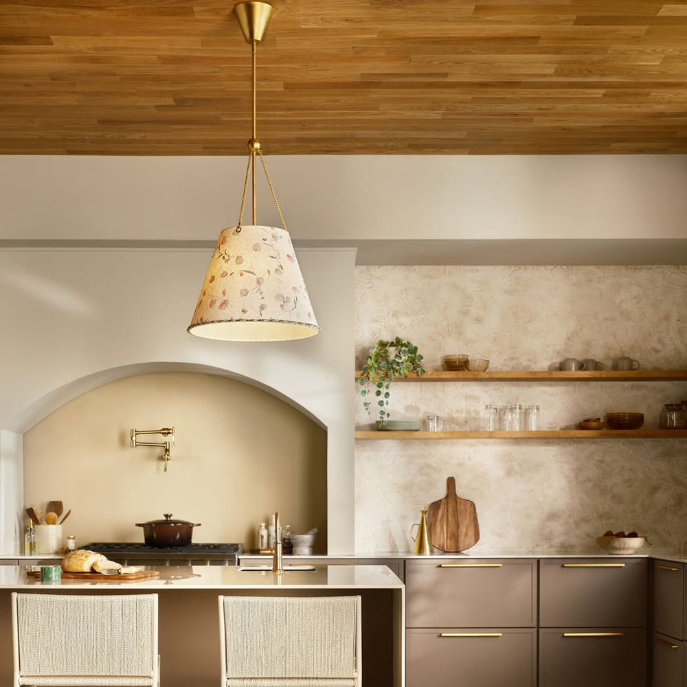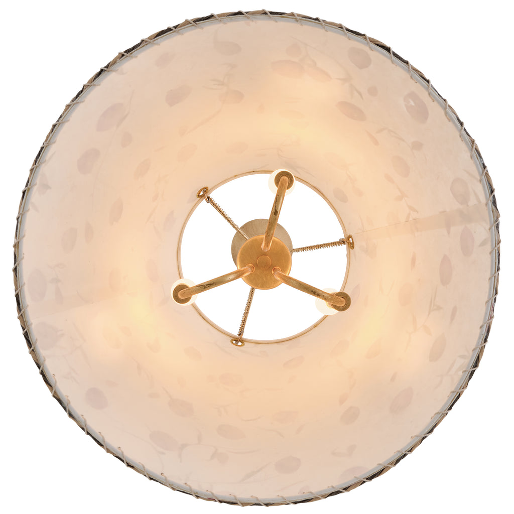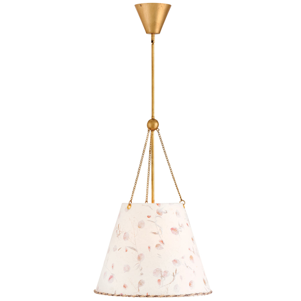 Artisan-crafted from handmade paper pressed with real flowers, Primrose’s delightful shade with twisted rope detailing brings truly unique beauty and cozy ambiance to your space. Its elegant conical silhouette is suspended gracefully from delicate chains, enhanced by a warm Distressed Brass finish