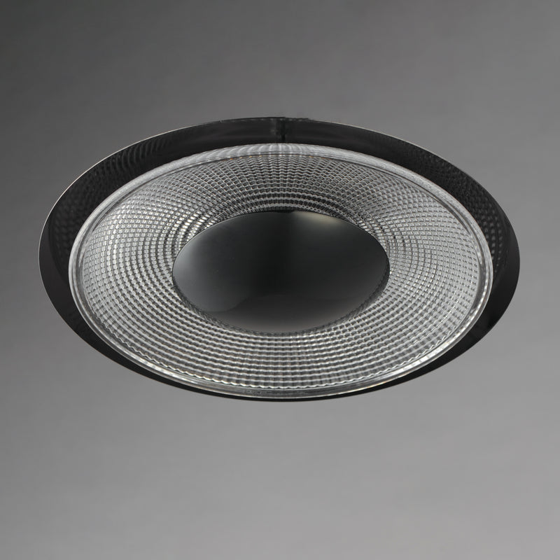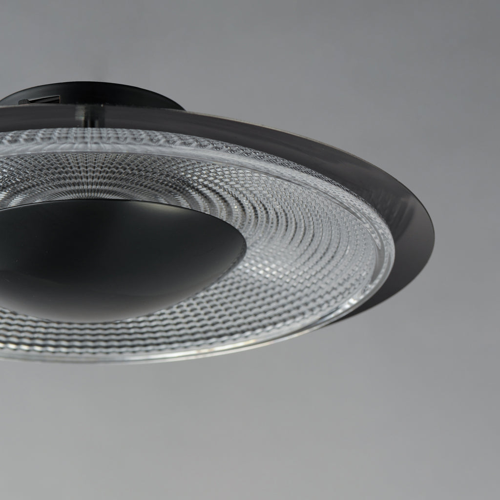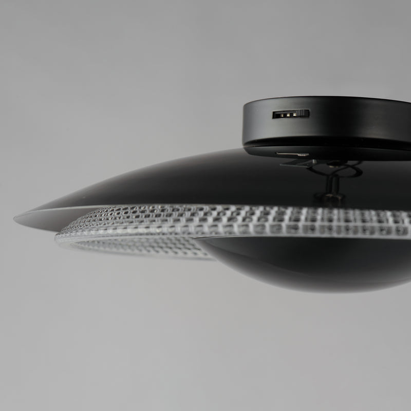 Somewhat recessed within a classic Mid-Century metal shade, a secondary thick glass shade pressed with prismatic patterns casts an iridescent light. The dedicated LED light source is concealed to reduce glare while providing ample lighting. Choose from large, thin-profiled cymbals of Brass with Dark Brown leather accents or Midnight Black metalwork with Black pebbled leather wraps stitched onto the frame. The Prismatic series of pendants, low profile surface mounts, and portable lamps incorporate advanced LED technology. A convenient touch dimmer on the base of the portable lamps features 3-step dimming allowing you to control the light settings for ambient or functional uses
