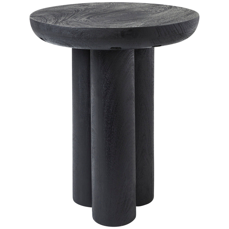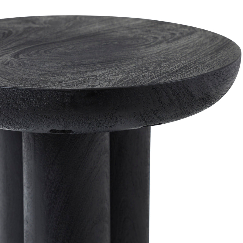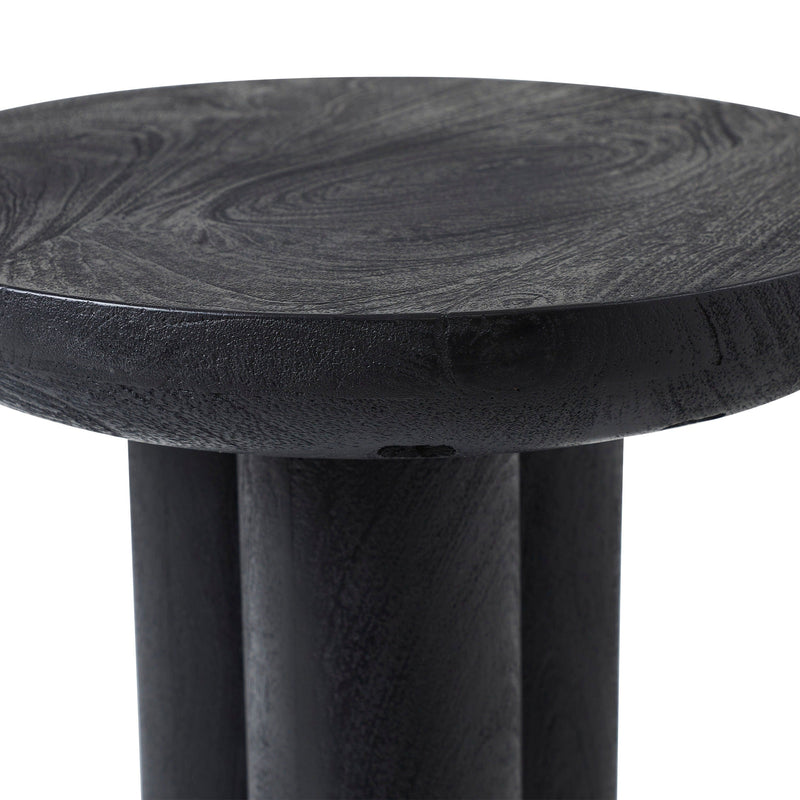 The Quintin accent end table is here to bring the Japandi aesthetic to your next project. Part Japanese, part Scandinavian, this side table is ready to get to work in any modern living room or bedroom where style and function are in demand. Made of sturdy mango wood, it has a handsome black finish that punctuates any decorating scheme with a bold statement of your impeccable taste and helps ground the rest of the furniture and decor in the room. Its sculptural round tabletop stands upon a column base to create a simplistic yet stunning synergy of style worthy of the most beautiful settings.