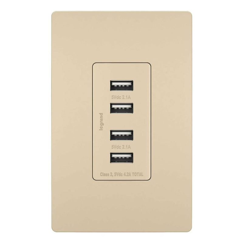 Get your smartphone all charged up with the efficiency of this Quad USB Charger offered by radiant. Incredibly blending the convenience of four Type-A USB ports and its slim fit, this fixture makes a thoughtful addition to your electrical connections. It comes with an easy-to-understand guide that will help you install it in no time. Match the lovely color scheme of your home décor with this USB charging switch in its five finish options - White, Light Almond, Ivory, Nickel, and Black.
