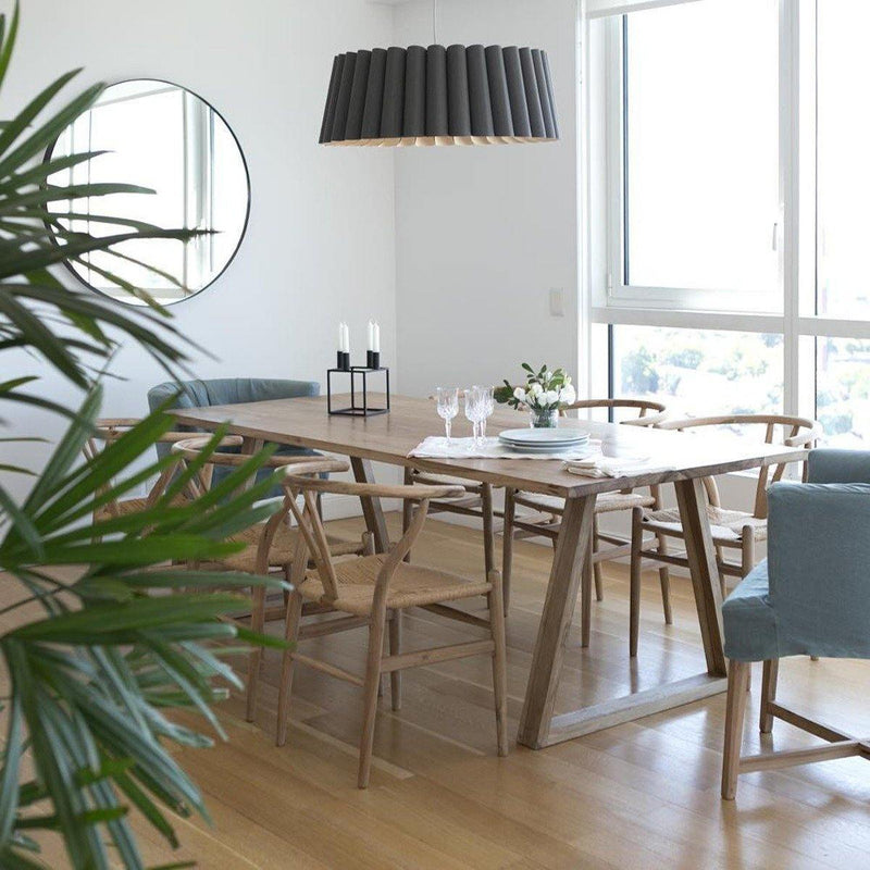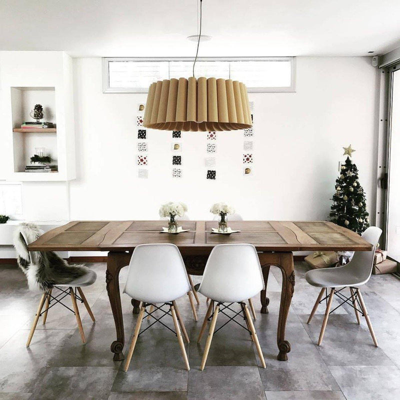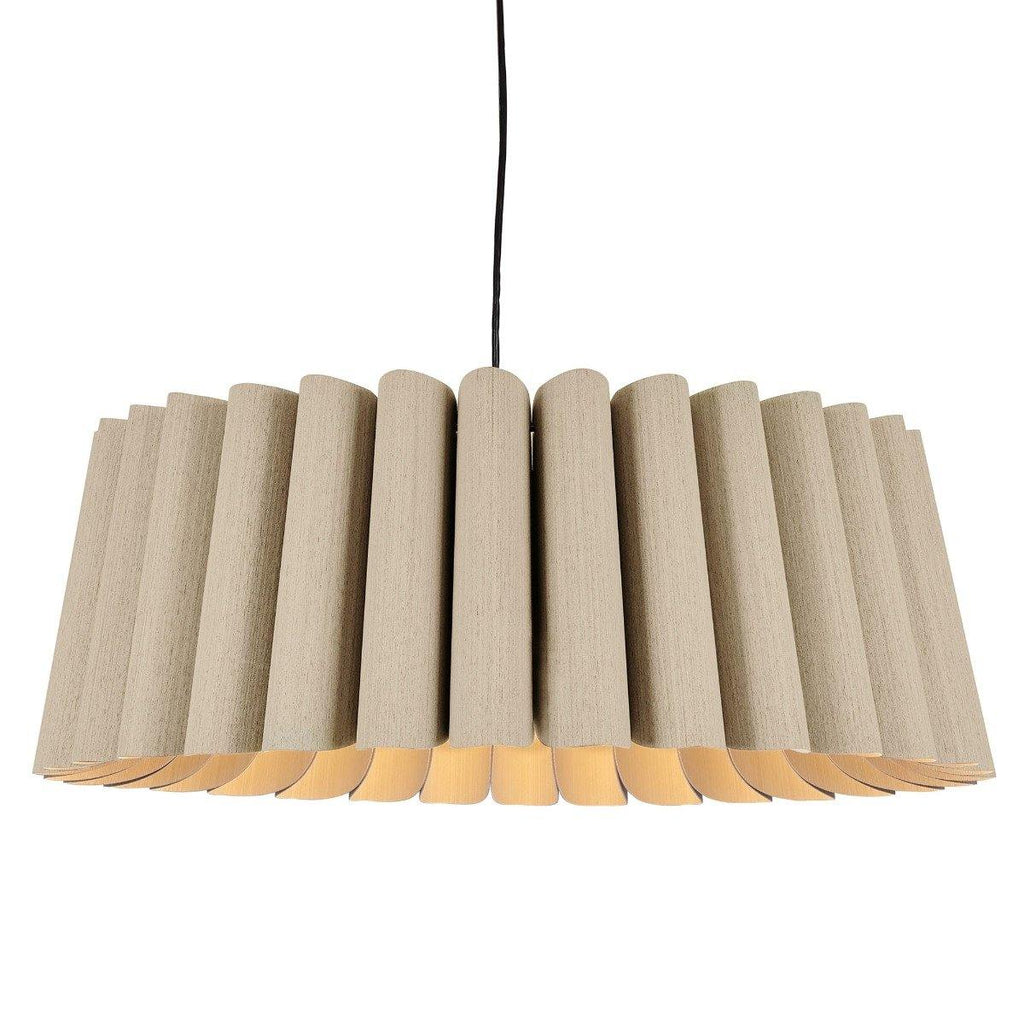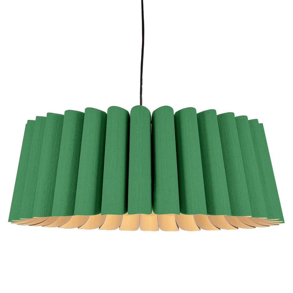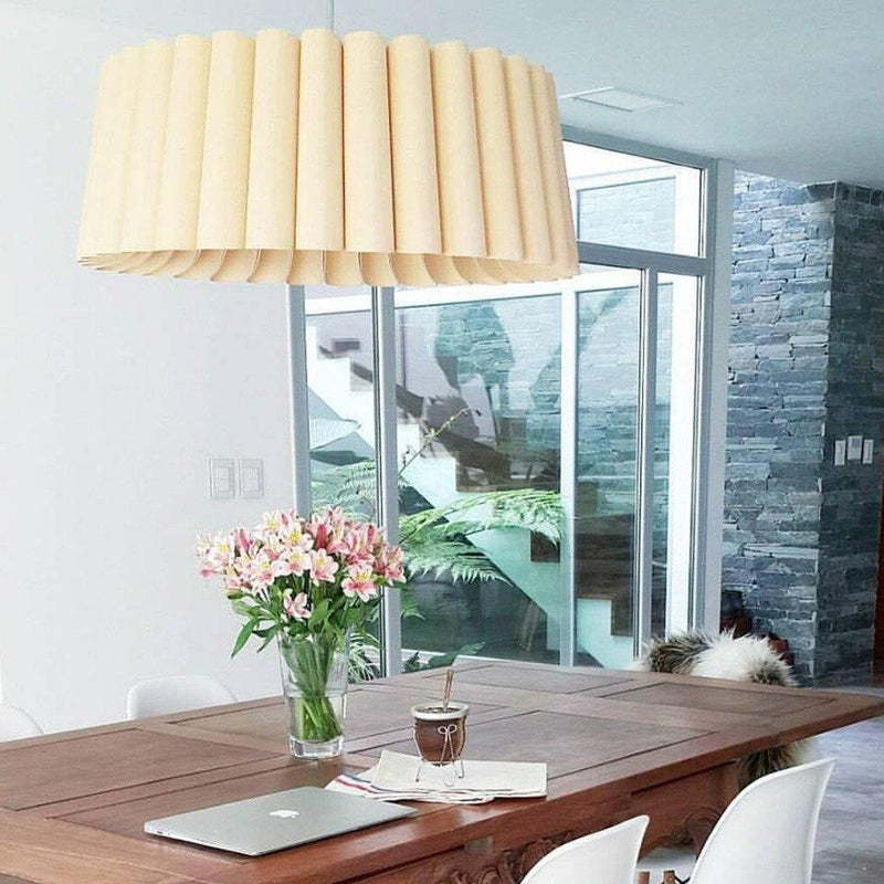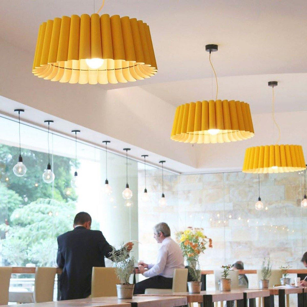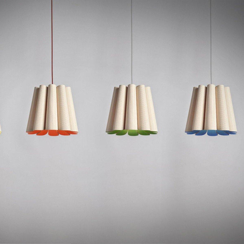 Showcasing pleated folds, the Renata Pendant from Weplight looks like it is made of a single length fabric. A unique and intricate reconstituted wood veneer manufacture gives this lighting piece a rich, woody tone that adds natural texture to any modern setting. Inspiration from the diverse ecological regions of Argentina, this charming lighting piece is sure to attract many glances from family and friends. Integrated with an E26 light source, this light comes in small, medium, large and extra-large sizes. It is available in ash, beech, ebony, grey oak, wenge, petiribi, red, yellow, green, blue, and white colors. Natural Felt color is available only for Acoustic feature.