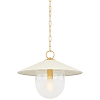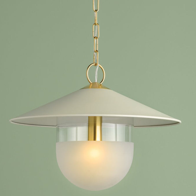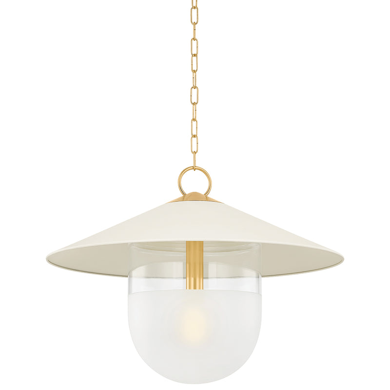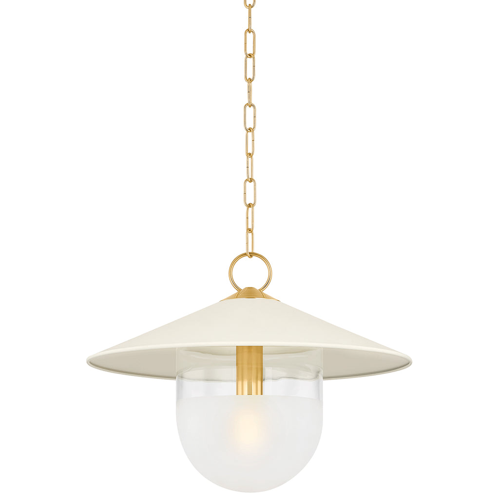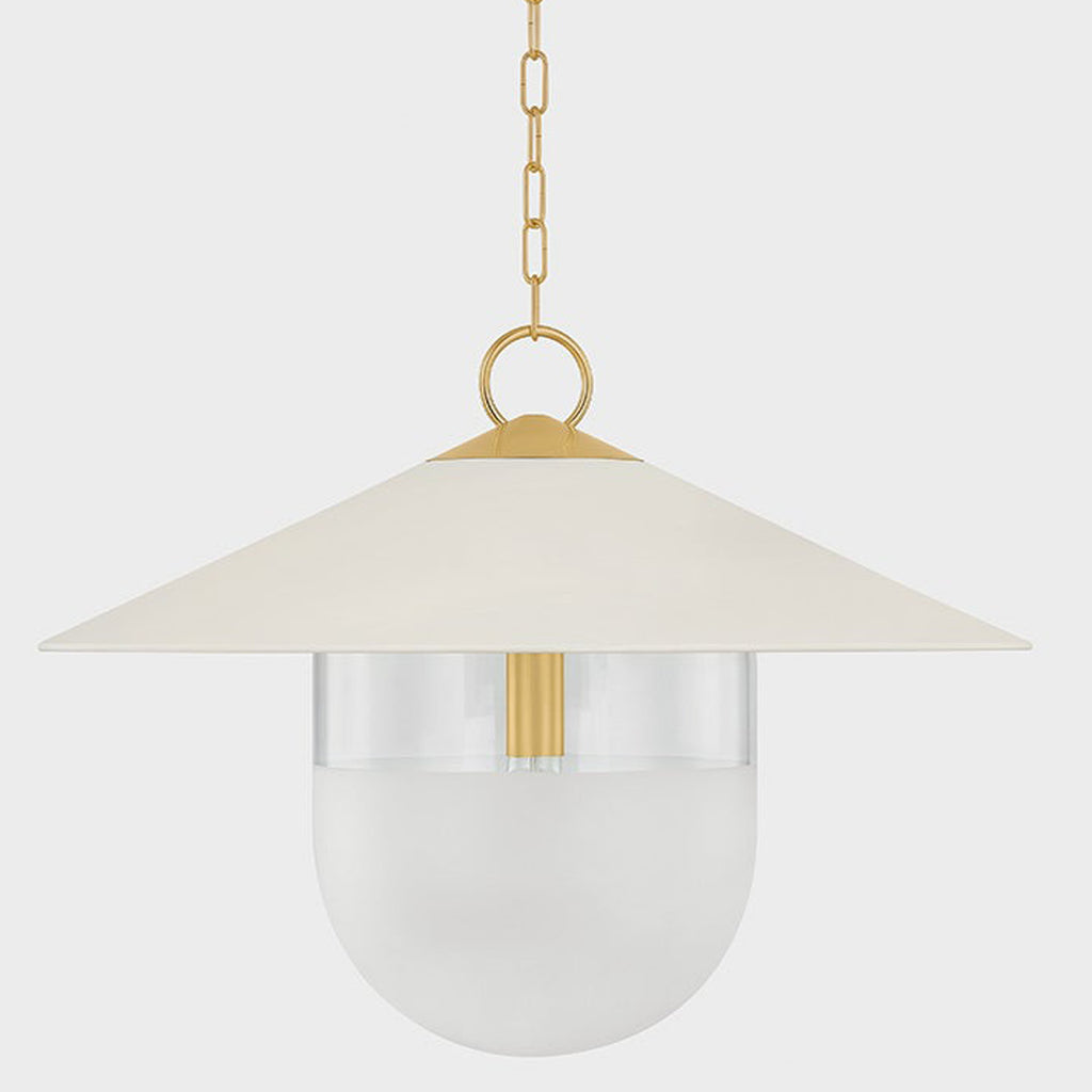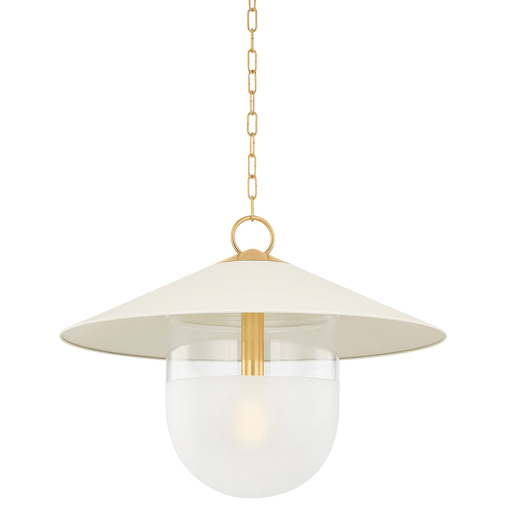 A modern update on factory lighting, Ressi combines easy geometric shapes with mixed materiality. From the clean lines of the soft cream shade to the chunky Aged Brass chain, this pendant feels fresh and approachable. The lower half of the shade is spot-etched to add a layer of diffusion, creating an atmosphere that is perfect in an entryway or above a dining table.