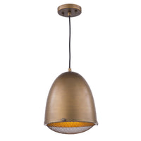 The Retro Loft collection of single pendants features a stunning plated bronze finish, with metal mesh on the bottom, suspended with black wire that is height adjustable. 10.25" diameter model shown but also available in larger and smaller sizes.