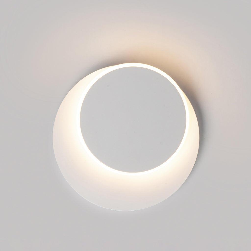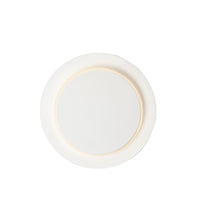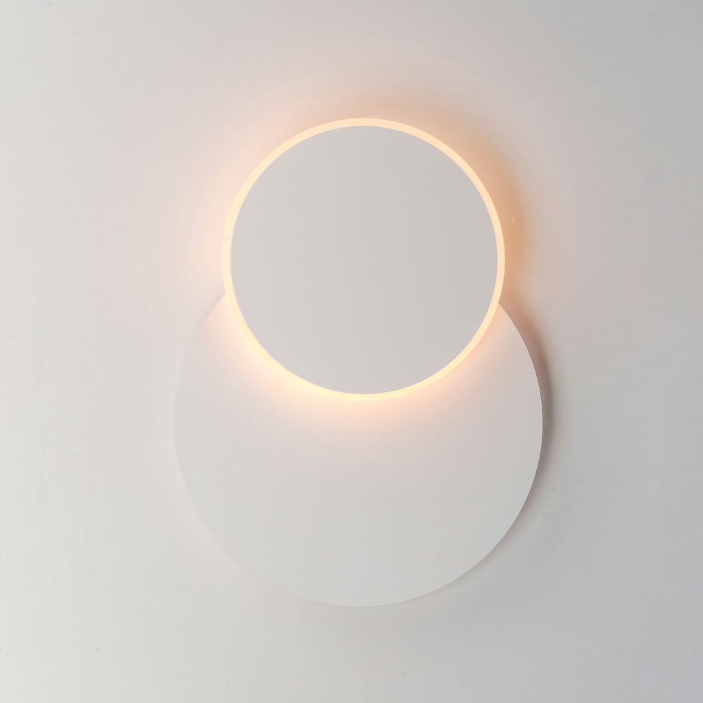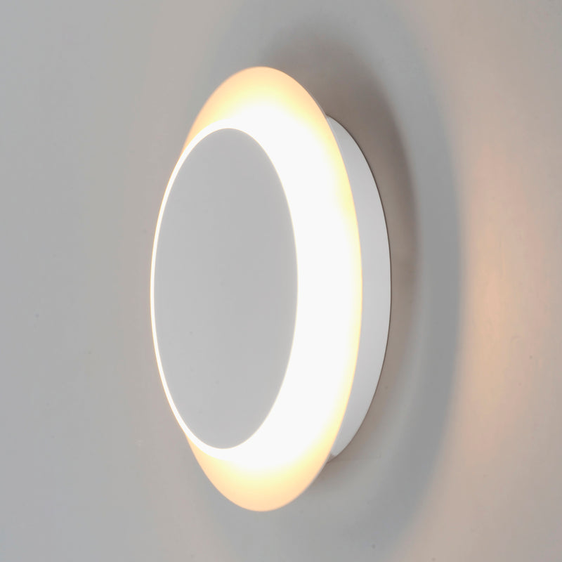 The exterior section of this fixture is lit on the edge and rotates from the top creating a halo effect on the surface behind. Available in either a wall or ceiling fixture is created in two sections finished in Matte White.