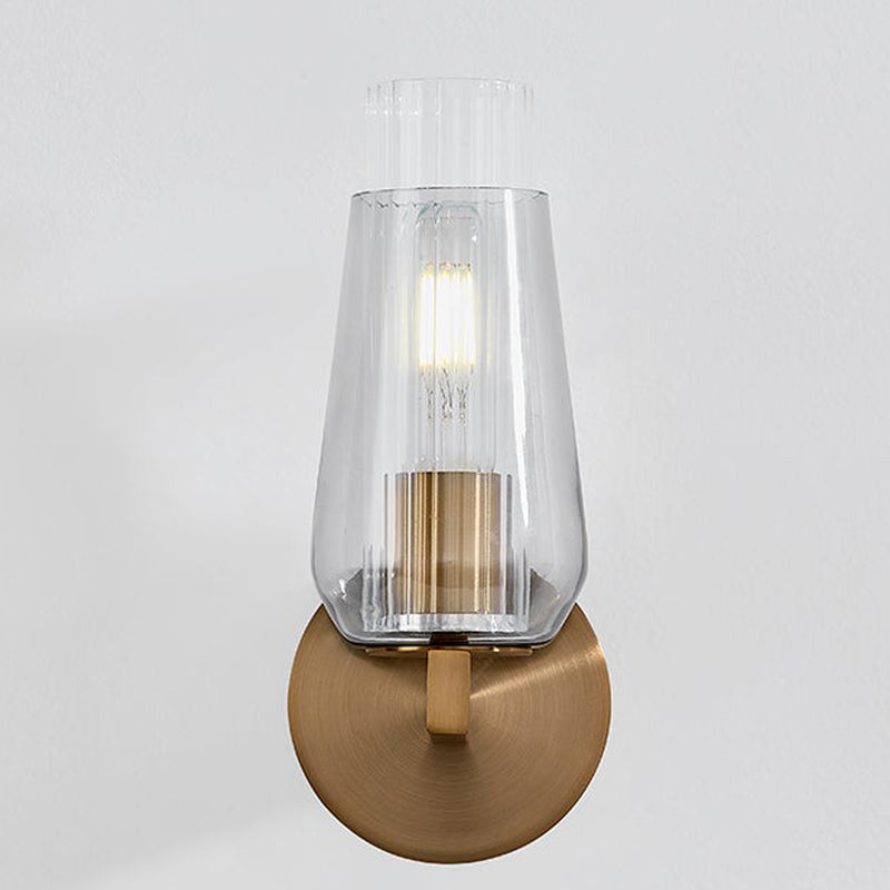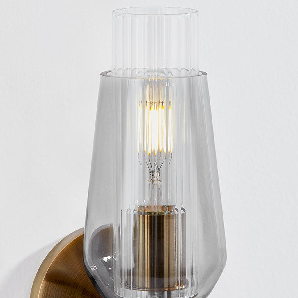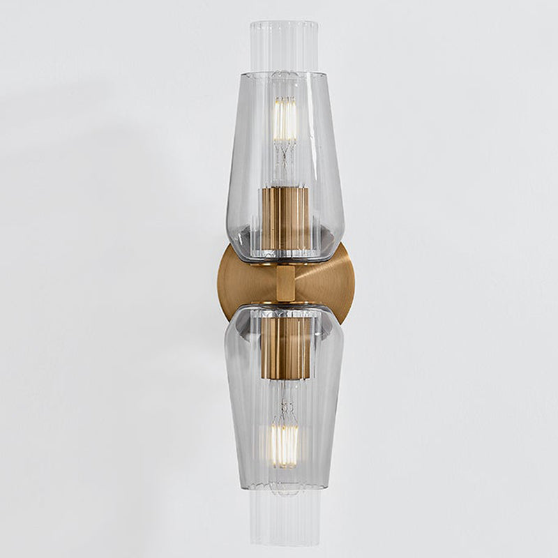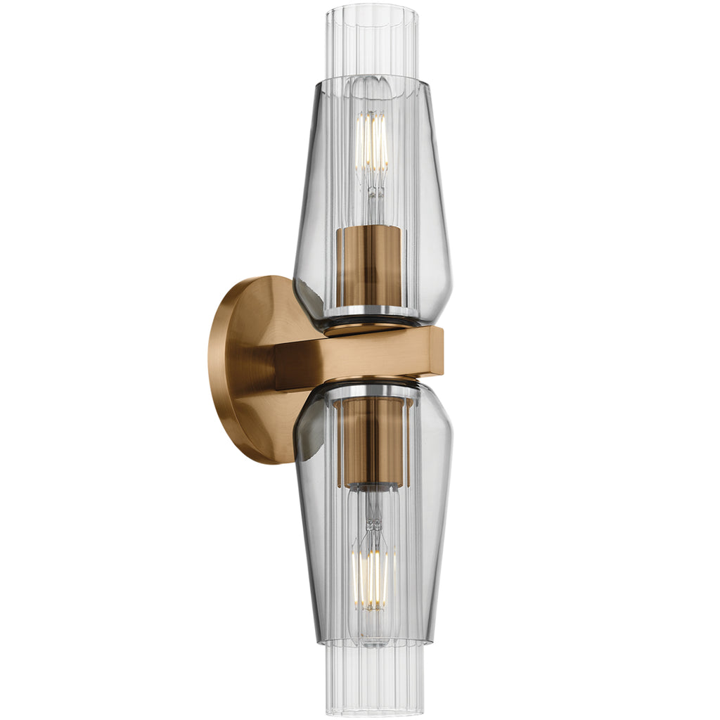 Playing with texture and form, Rex features a striking layered glass silhouette with a clear fluted interior and a smoke exterior. The darker glass creates an artful and soft diffusion of light while harmonizing with the rich hues of the Patina Brass finish on the metalwork. Rex is available as either a 1 or 2-light sconce.