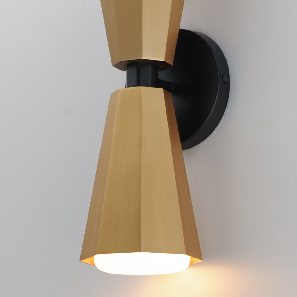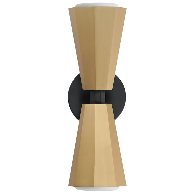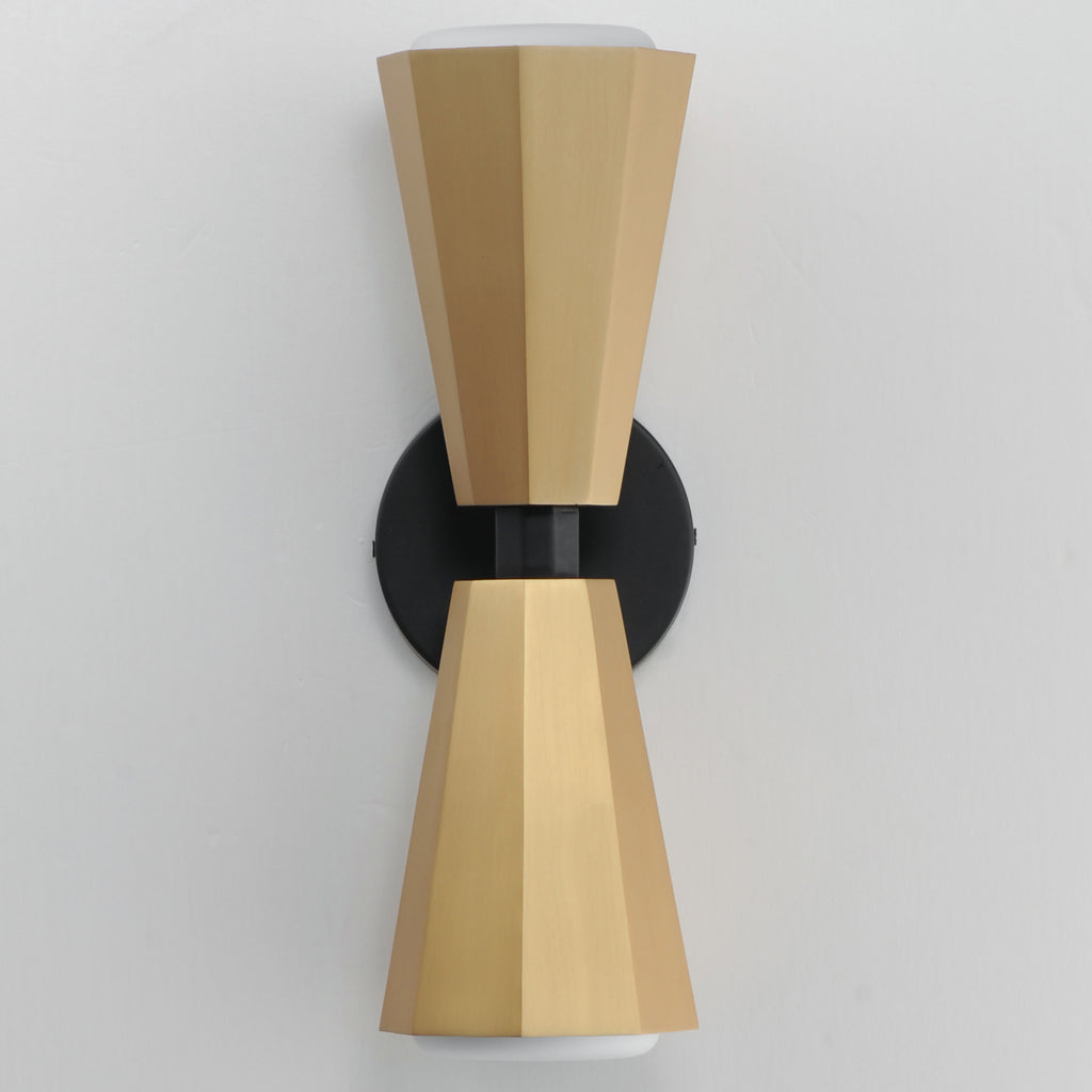 The Rizzo collection exudes stylish flair and spirited design, combining faceted metal shades in Natural Aged Brass with striking Matte Black accents. A flat-bottomed Satin White glass shade protrudes gracefully from the base of each metal shade, delivering soft, inviting light with a touch of elegance. Available in a variety of versatile configurations, the collection includes an articulating 4-arm chandelier, two sizes of stem-hung linear pendants, cord-hung multi-mini pendants, a sleek wall sconce, and a bold, coordinating flush mount. Elevate any space with Rizzo's perfect balance of timeless sophistication and modern edge.
