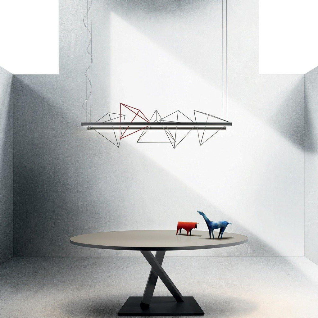 A lighting fixture like the Rock Garden Linear Pendant by Pallucco will not only light up your room but also bring a grandiose appeal to it. Kazuhiro Yamanaka extracts geometric inspiration from the Japanese rock gardens to add an exclusive touch of modernism to your interiors. The pyramidal frames pass through a cylindrical shade that holds an illuminating light source. This pendant light is available in Matte White and Matte Black colors to blend in with your other décor accessories in the best way.