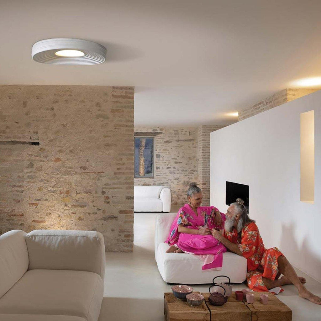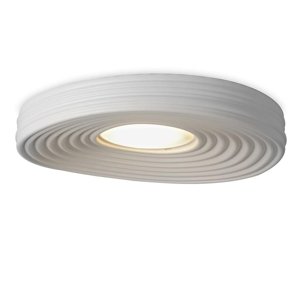 Resembling a gypsum design, the Roma Ceiling Light from Karman Design has the capability to redefine interior spaces with textural contrast. You can see a bright, illuminating light fixed at the center, which ensure direct lighting at the bottom. Made from white plaster material, this lamp takes its name from a Latin acronym, R.?O.?M.?A.? embodies the City’s quintessence in a lamp: (R) romantic, (O) organic, (M) matter-related, (A) atypical. It is available in two light sources; LED 2700K and 3000K.