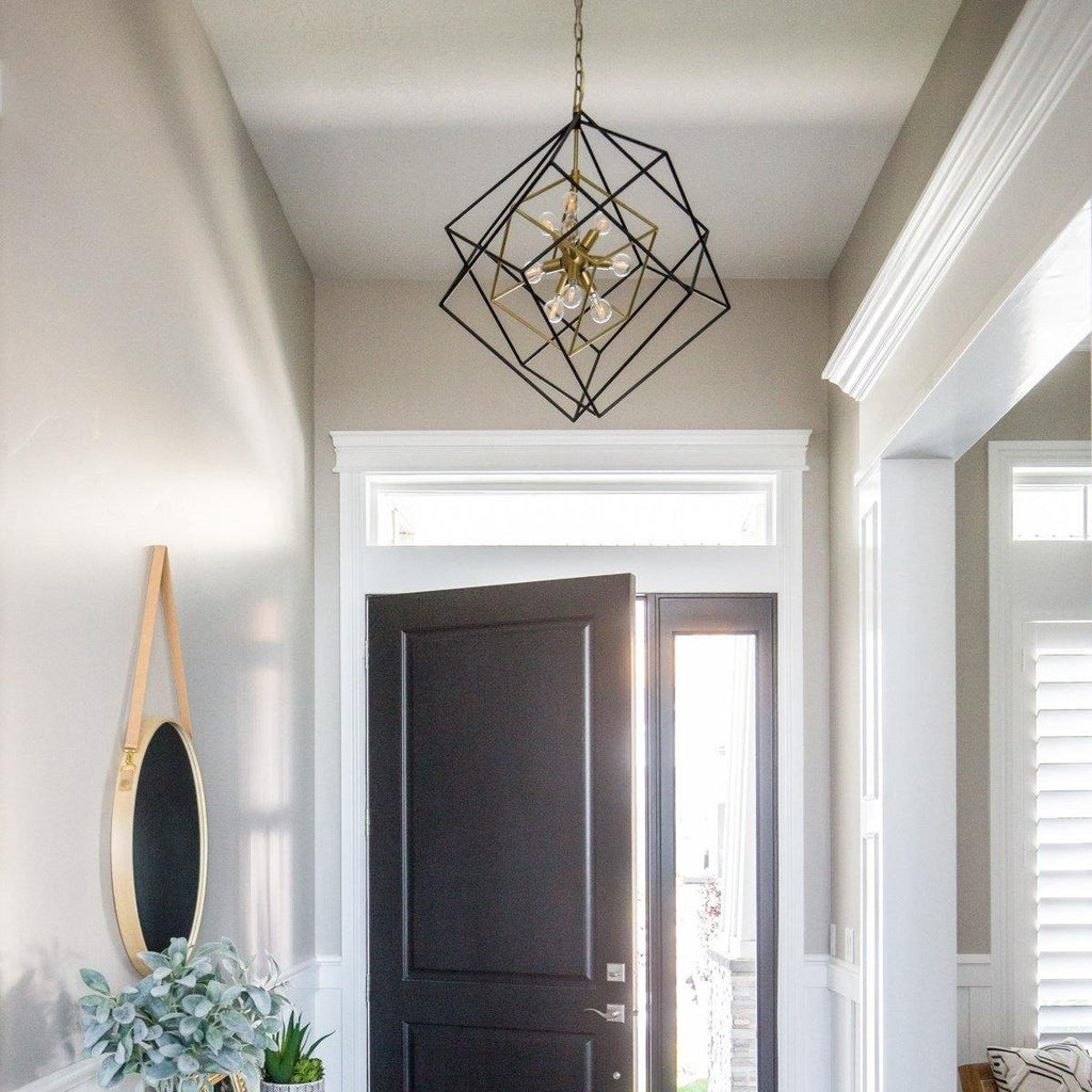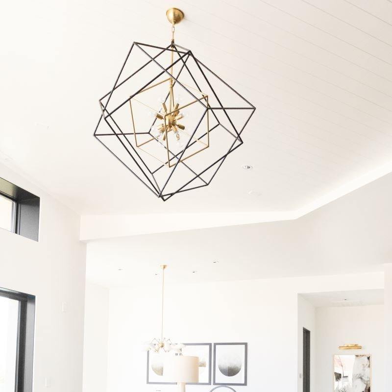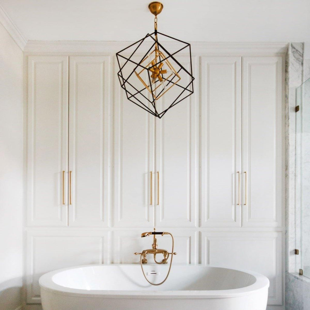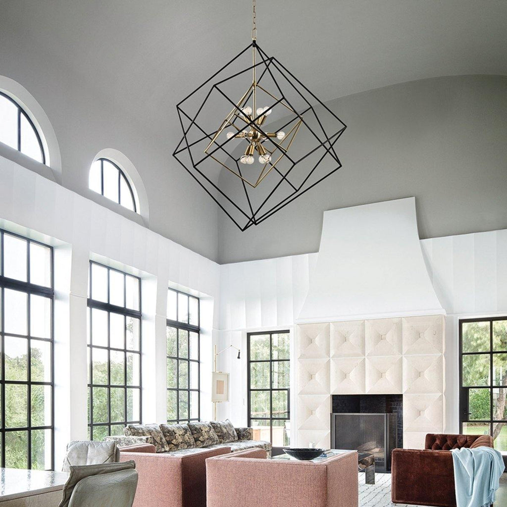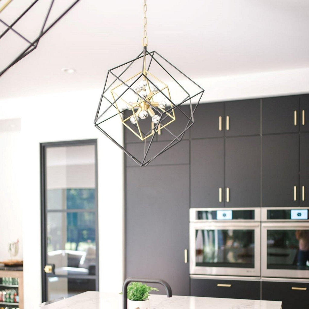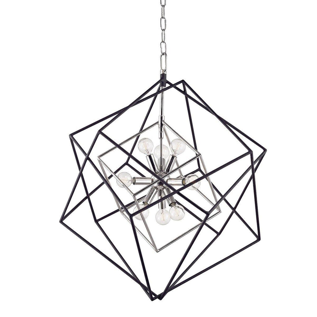 The Roundout Сhandelier by Hudson Valley is in a shape of a cube that is suspended from the ceiling with the help of an interlinked chain. This minimal style chandelier is available in small, medium, and large sizes. The E12 pendant comes in both aged brass and polished nickel finishes. This contemporary lighting fixture is sure to complement your unique sense of style. This chandelier lends a radiant charm to the rooms and nooks and corners of your home. The chandelier is UL listed and can be used in damp locations.