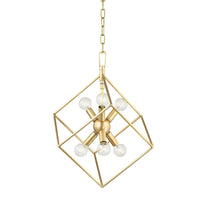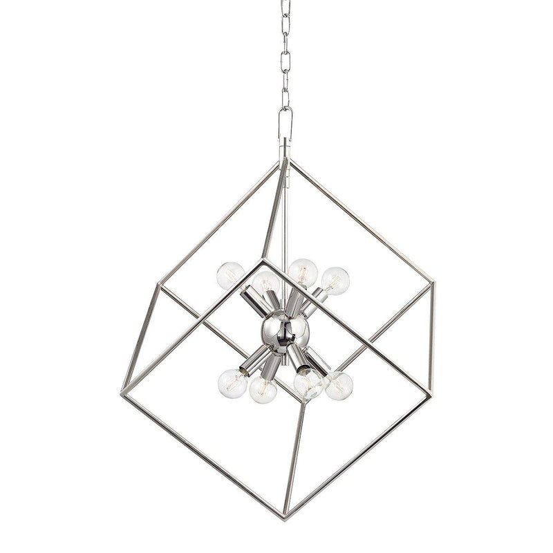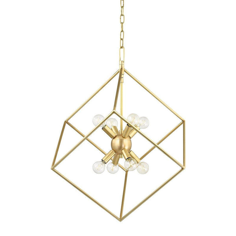 The Roundout Pendant by Hudson Valley is in a shape of a cube that is suspended from the ceiling with the help of an interlinked chain. This minimal style pendant is available in small and large sizes. The E12 pendant comes in both aged brass and polished nickel finishes. This contemporary lighting fixture is sure to complement your unique sense of style. This light pendant lends a radiant charm to the rooms and nooks and corners of your home. The pendant is UL listed and can be used in damp locations.