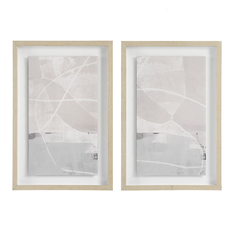 The Rovereto set of two framed printed art is the perfect choice to add impact to your space. Each frame measures a generous 20” x 30” making them a great pairing as a big and bold impact over a dining room buffet, behind a living room couch, above a bed, or anywhere else your imagination takes you. Printed in neutral tones on rag paper and enclosed behind glass with a floating mount this wall art delivers an artisanal effect in any interior. Framed in rustic yet modern cream-finished wood, this set is ready to hang thanks to its convenient 2-way D-ring hanging system