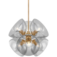 Salix puts an organic spin on a mid-century modern Sputnik silhouette. This voluminous pendant features a compact array of glass bowls that form a stunning outward-facing bloom of light. The allover smoke glass finish of the shades is complemented by warm Patina Brass metalwork.