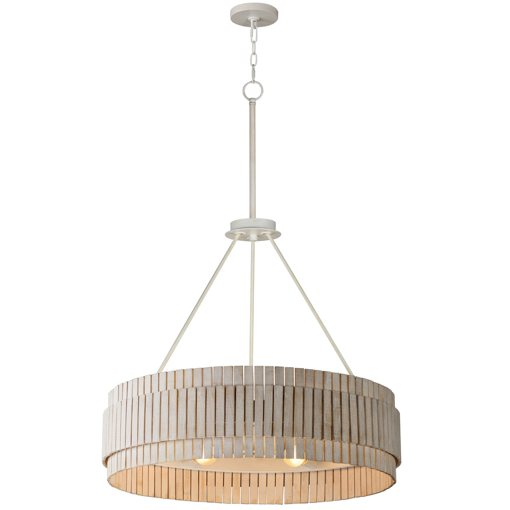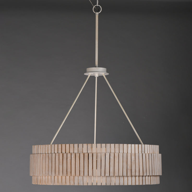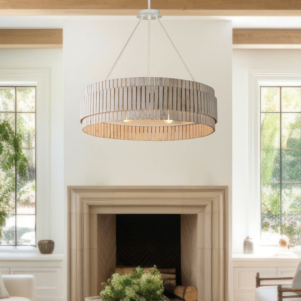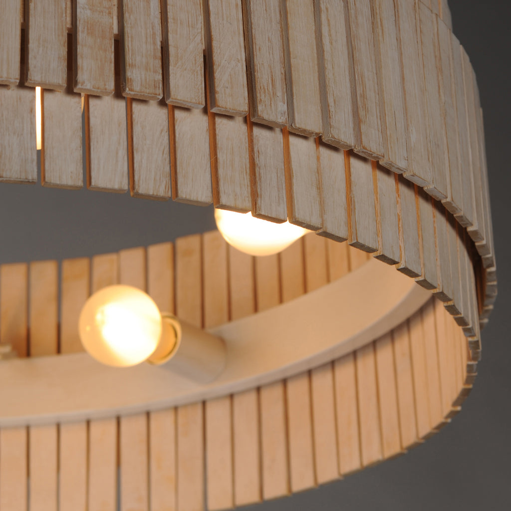Crafted from sustainable bamboo, this lighting collection elevates the classic drum shade design with handcrafted, natural materials. The bamboo slats are thoughtfully spaced to allow light to filter through, creating a warm and inviting ambiance. Finished in a whitewashed, hand-brushed finish, both the pendant and coordinating sconce feature neutral tones that seamlessly complement a variety of interior styles.