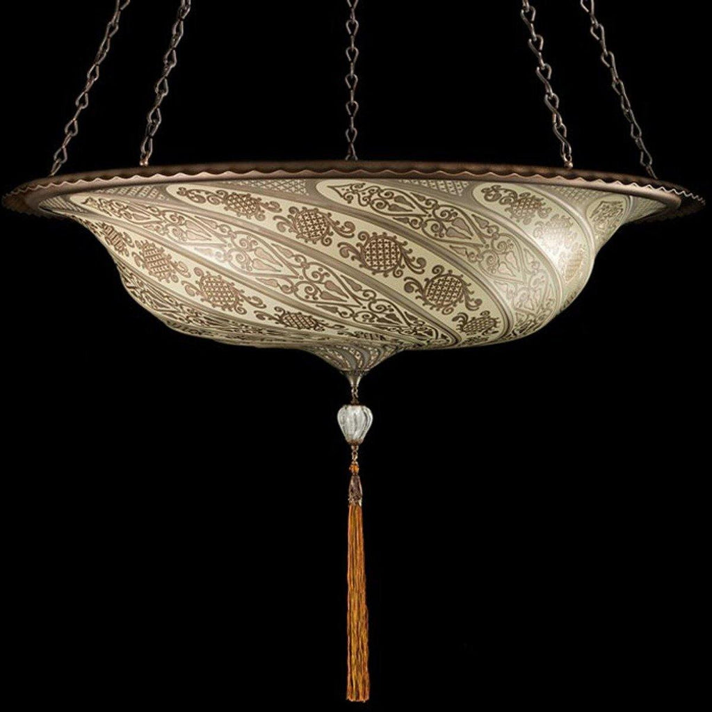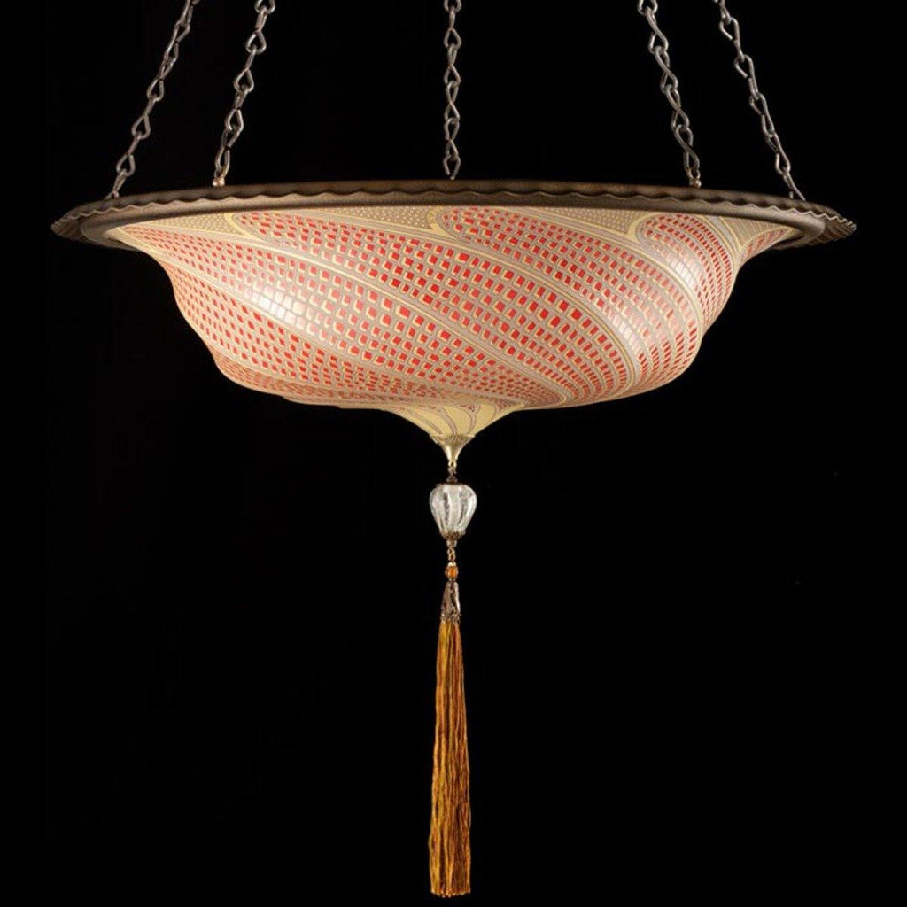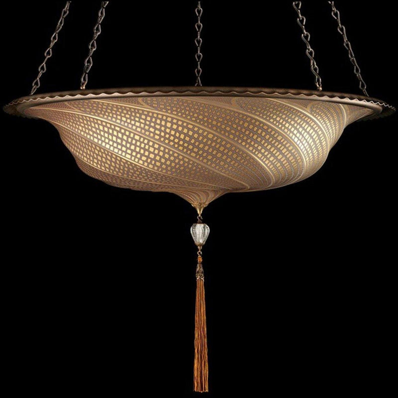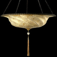 Captivating in visual appeal and brilliant in radiance, Fortuny brings the Scudo Saraceno Glass Suspension that has a glass body, specially designed for sophisticated and spacious interiors. Adorn it in your living room or dining room, which will get enhanced with the help of a brightening E26 lighting source. Perfect for any contemporary space, this Suspension is available in Gold Classic, Silver Classic, White Classic, Gold Mosaic, and Red Mosaic colors.