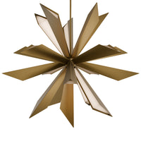 In a dazzling starburst of light, the iconic shape of the Siren pendant pays homage to mid-century design while remaining a perfect complement to contemporary interiors. Triangular bars form a striking silhouette, adding depth and character to the room. The stunning 40-inch pendant is finished in aged brass and casts warm, 3000K LED illumination.