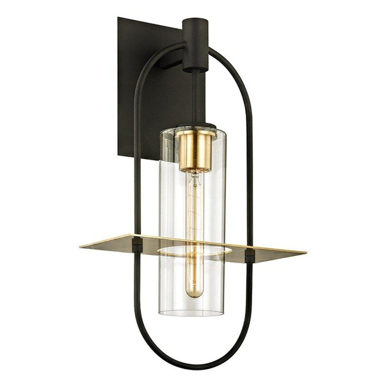 Enhanced with a dark bronze and brushed brass finish, the Smyth Wall Sconce from Troy Lighting is a staple update for your décor collection. Designed to be the center of attention, this light can elegantly complement both traditional and contemporary decors. It features a clear ambient light, which imparts a classic charm to most decors. The refined look of this glass lamp is perfectly complemented by a bold black panel at the back. This bold yet subtle decor item is available in small, medium, and large size options.