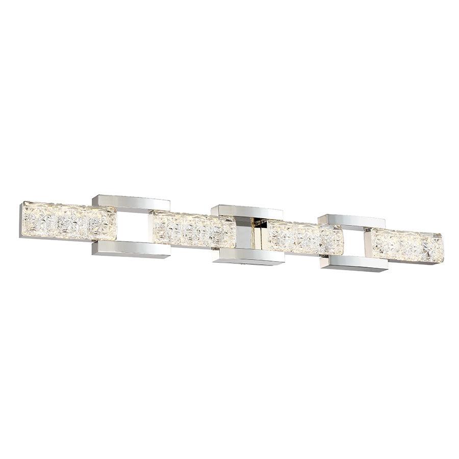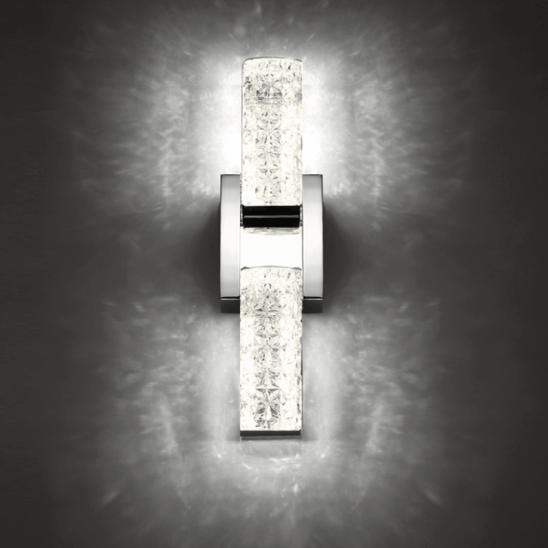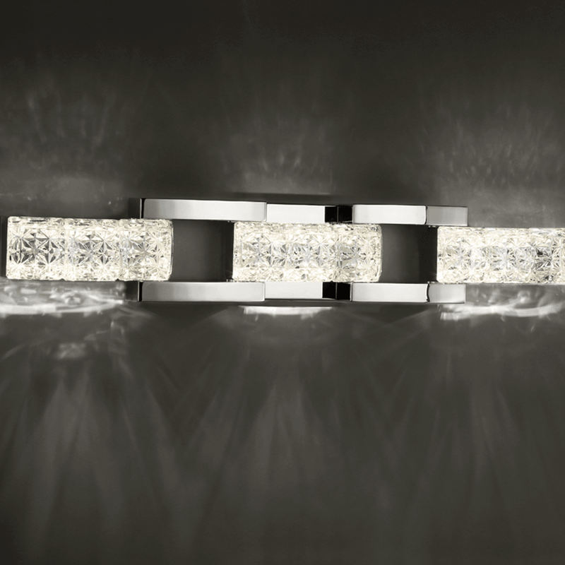 The eye-catchy yet soothing appearance of the Sofia LED Vanity Light in Polished Nickel By Modern Forms makes them capable of acting as a statement piece in your décor. This vanity light puts forward an ornate look that can be credited to the impressive use of hand-cut crystal accents in alternating panels. Featuring a sleek horizontal silhouette, this vanity light can beautify any living space as it mimics the look of a diamond-studded tennis bracelet. A rich polished nickel finish can be seen on all its three size options; 19", 30", and 41".