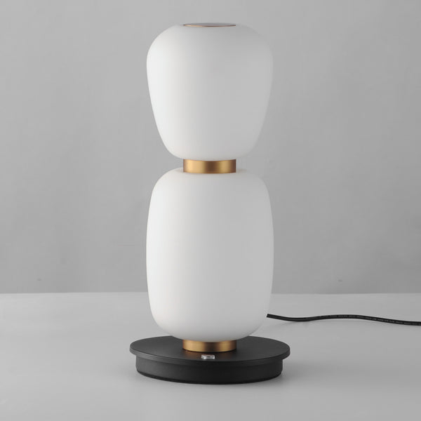 Inspired by Japanese lanterns, this soft contemporary collection features Satin White glass shades of various shapes and sizes mounted on metal frames finished in a dramatic two-tone Gold with Black accents.