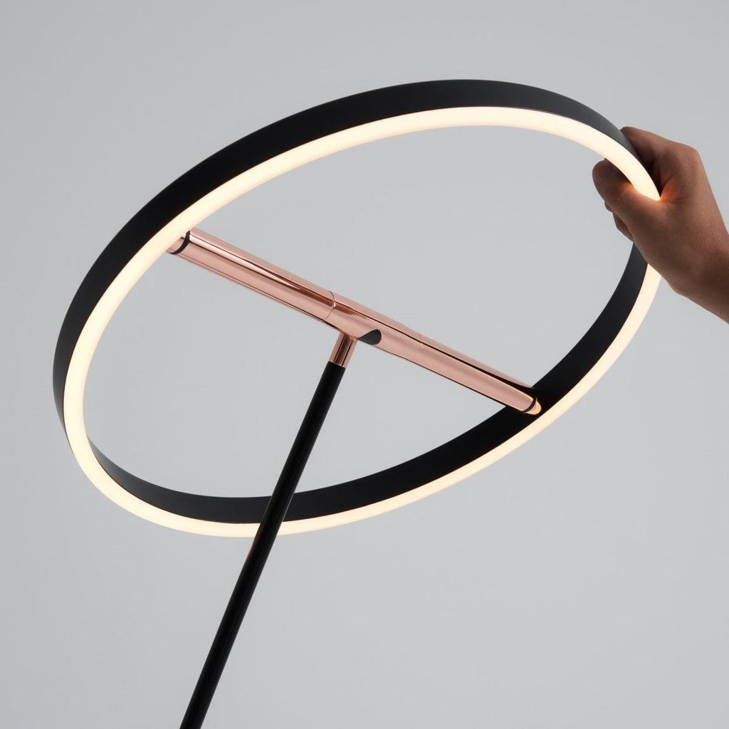 SOL Floor Lamp by Seed Design is a contemporary floor light inspired by the definition of understated luxury. The adjustable ring tilt makes the pendant on this stand float. The light source in this floor light comes from the hidden LED that can be gradually dimmed for a subtle sunrise and sunset effect at your home. This floor light comes in a variety of finishes including matt black and shiny copper.