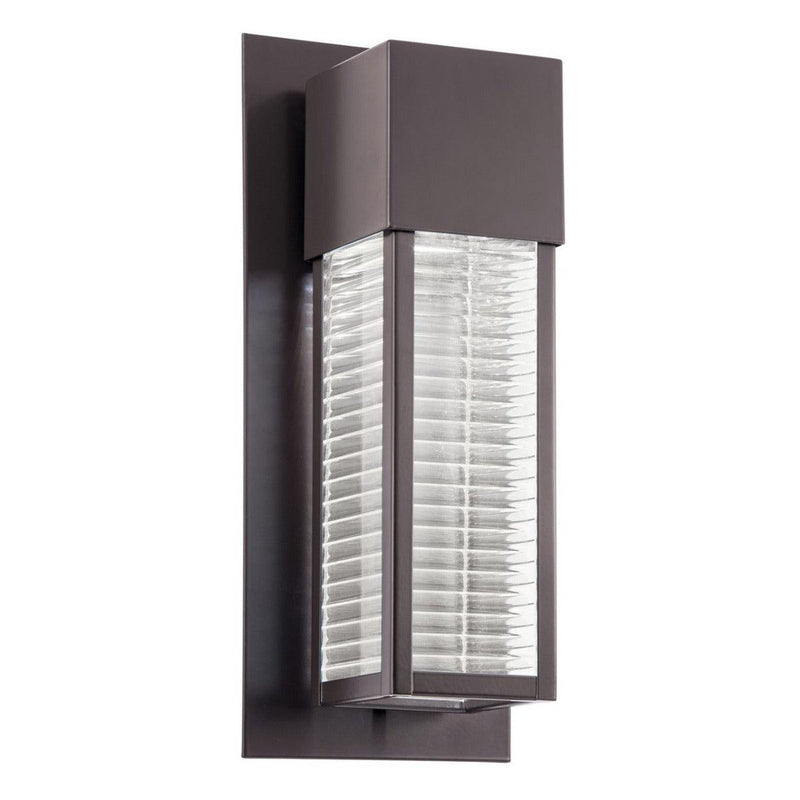 Sorel Wall Outdoor LED has an architectural bronze finish that perfectly matches the type of glass used in its construction. All together they create an image of a classical outdoor wall sconce expressed in a contemporary style. The linear grid of the glass panels emphasizes geometrical traits of Sorel Wall Outdoor LED making it even more appealing.