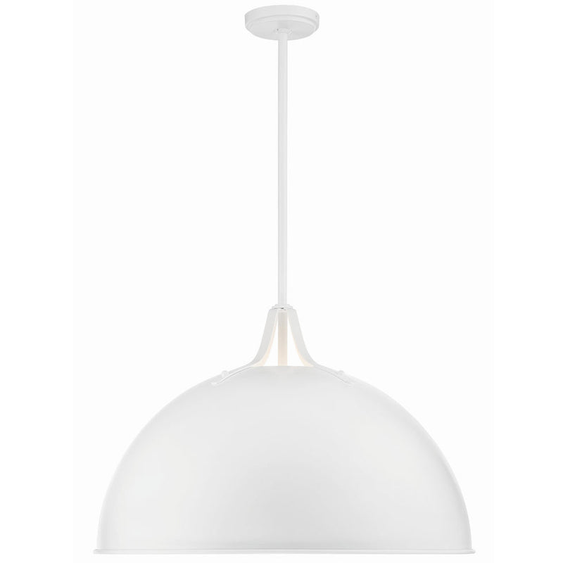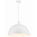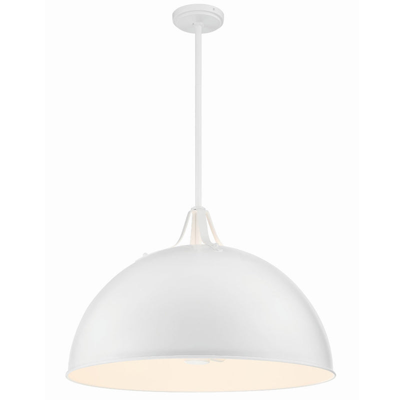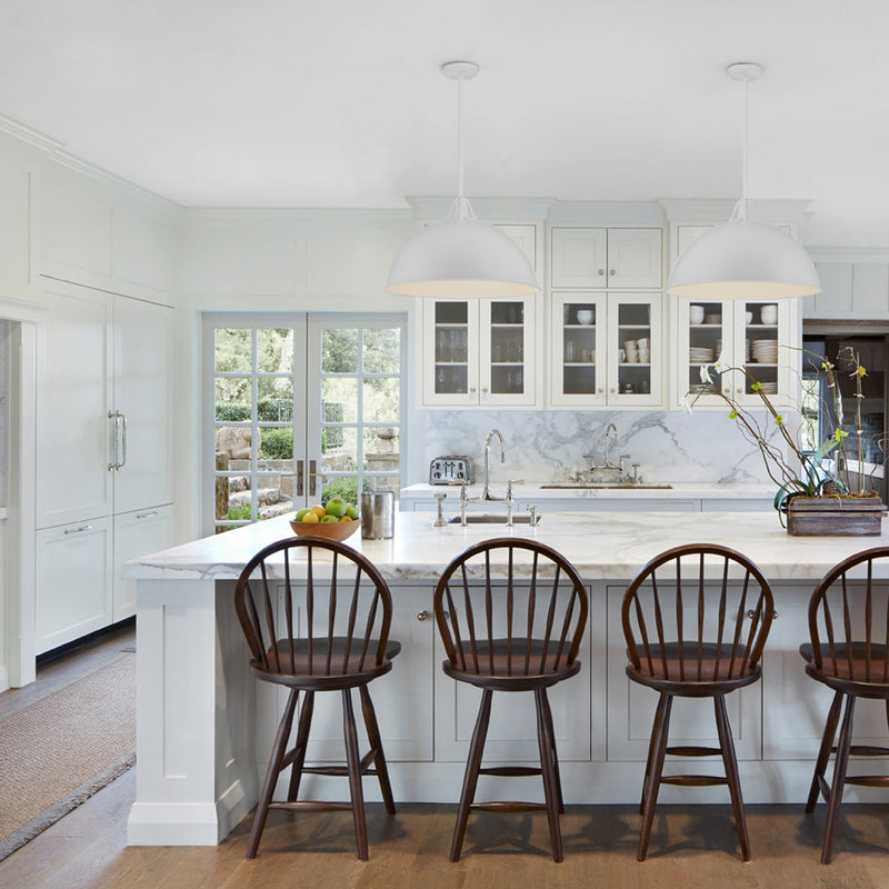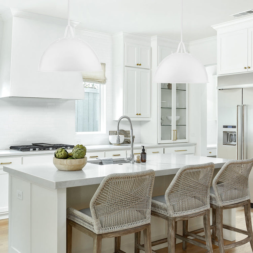 A large dome metal shade presents a clean and streamlined silhouette for our Soto collection. This sculptural one-light or three-light pendant is available in Matte Black with contrasting Antique Gold or Matte White. This industrial meets modern farmhouse design shines direct light downwards into your space, making it a perfect choice when hung over a breakfast nook or in pairs over a kitchen island.