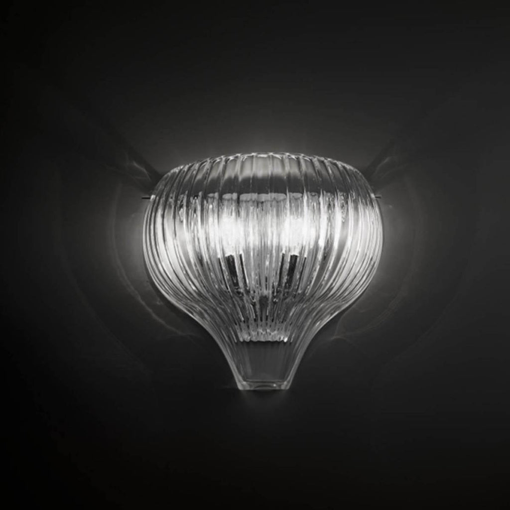 More than 10 years of valuable experience and respect for the Venetian tradition of glass production and processing, a group of outstanding experts in various fields and the highest quality are the core of the Sylcom brand. The combination of such unique light perception with technology and craftsmanship has contributed to Sylcom’s international success. Their wide range of products includes lighting inspired by royal splendor, but also more contemporary solutions and classic elegance. Sylcom products are known for their hand-blown glass and unique compositions.Grooved surface and distinctive bell shape define the look of the Sphera Wall Sconce. This stylish wall sconce throws multiple reflections of light with its grooved surface. A fascinating light that can be a striking addition in the staircase, living room, and dining room. Offered in small, medium and large sizes, this wall sconce with polish chrome finish is suitable for all types of interiors. This wall sconce is available in various exquisite colors, including amethyst, submerged amber, milk white clear, ivory, clear, blue denim, smoked, and grey.